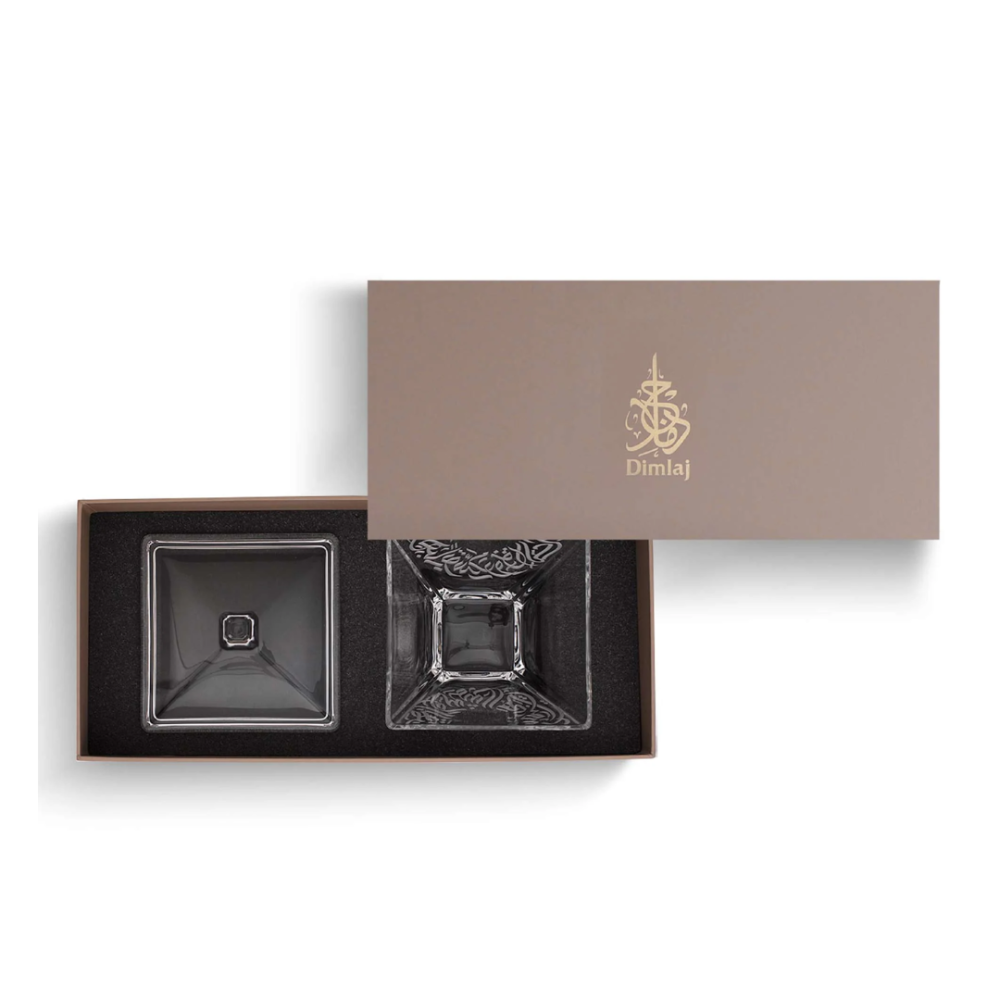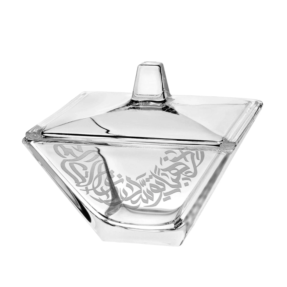 تمرية وسكرية زجاجية فاخرة بزخرفة بلاتينية من الخط العربي