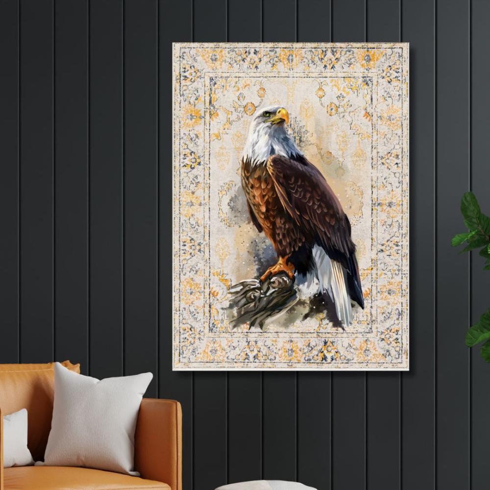 لوحة جدارية مطبوعة بخلفية سجاد وكولاج صورة صقر