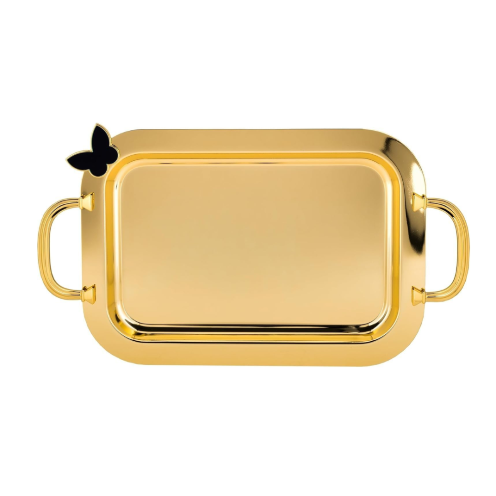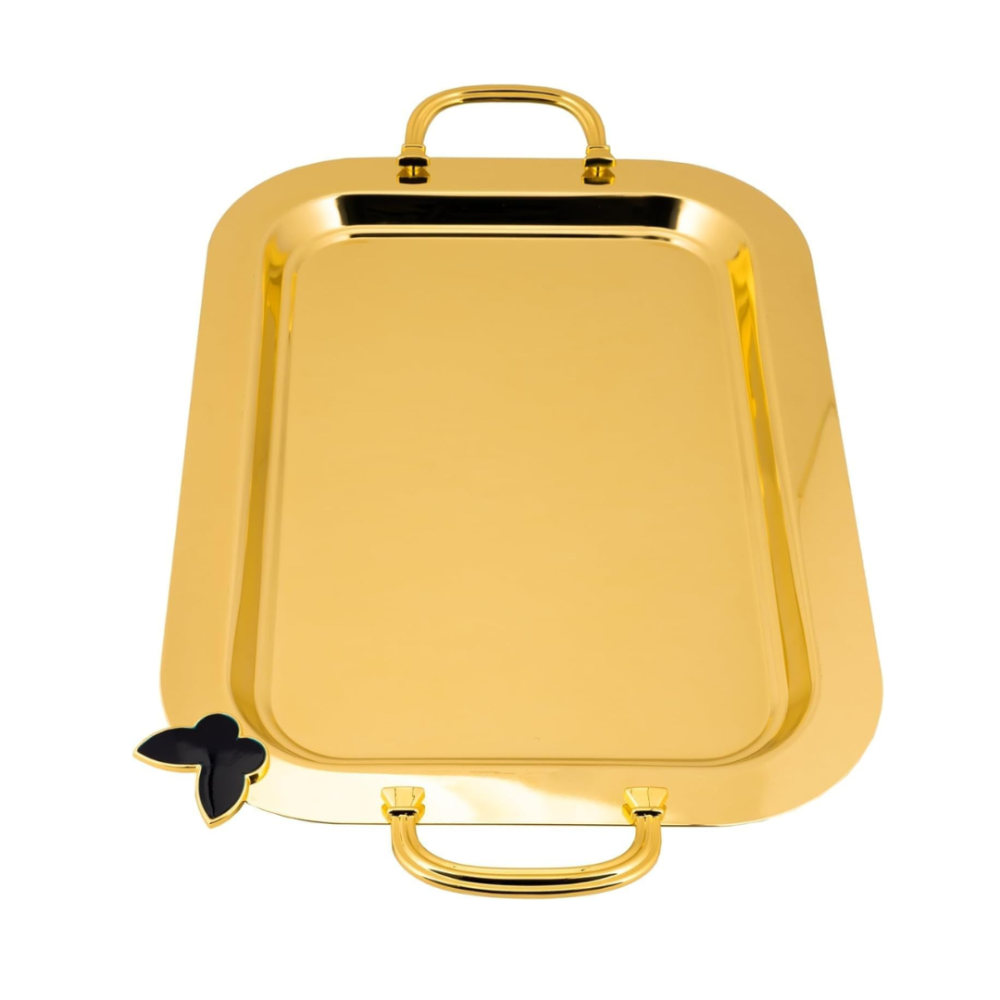 طقم صواني تقديم مستطيلة ستيل فراشة جانبية ومقابض من السيف - لون ذهبي