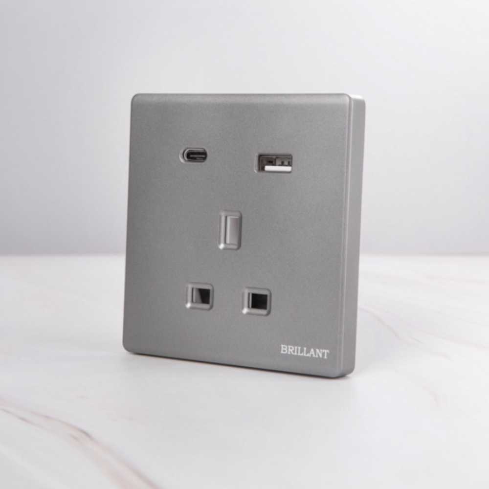 اطلب الآن فيش ثنائي المنفذ USB مودرن رمادي برلنت من قسم أفياش كهرباء مودرن رمادي متوفرة داخل