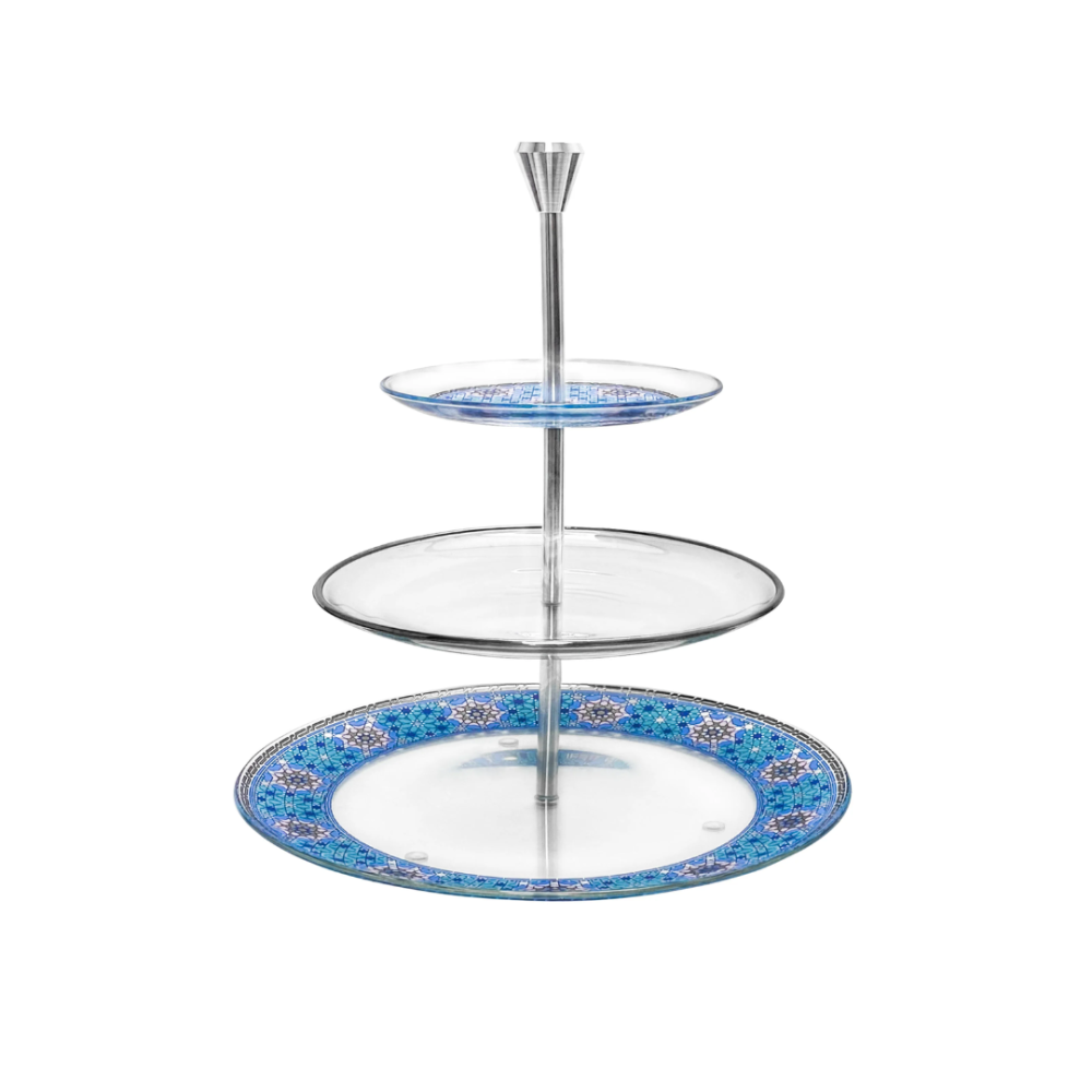 صينية تقديم زجاجية ثلاث طبقات بزخرفة ملونة انيقة مستوحاة من فن البلاط المغربي