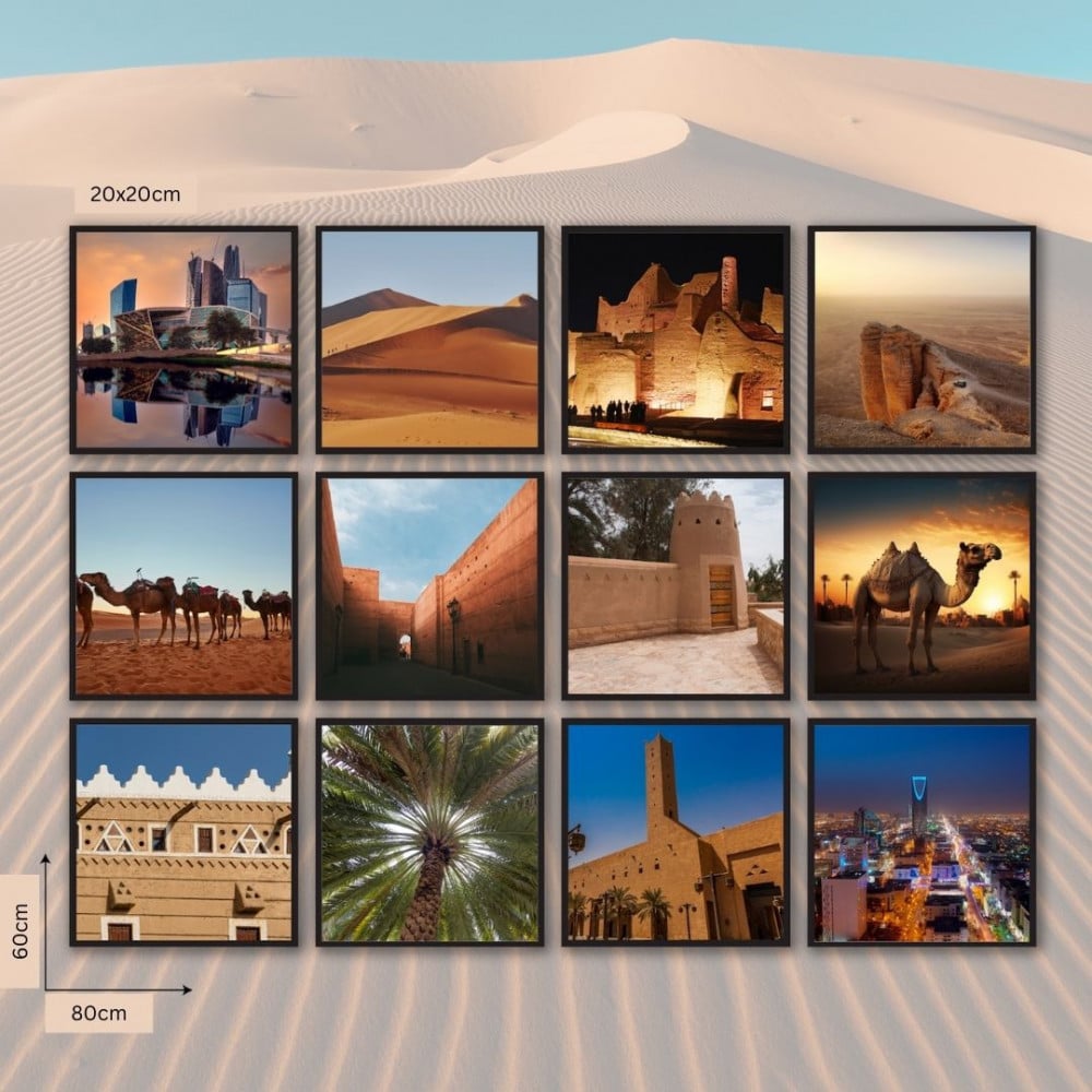 لوحة كنفاس جدارية مطبوعة - طقم من مجموع 12 لوحة معالم مدينة الرياض