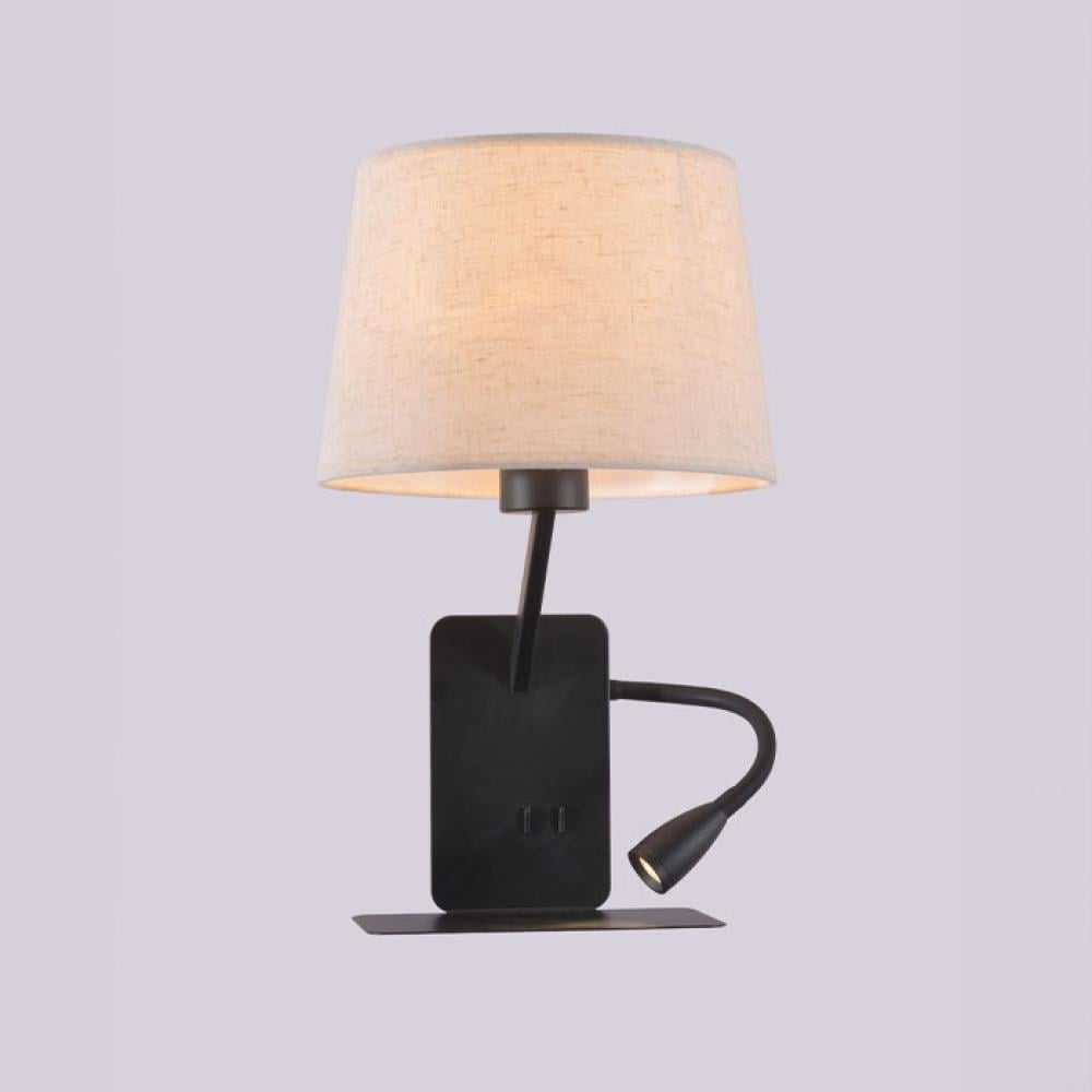 إنارة جدارية فندقية بقاعدة مستطيلة وطاولة أسود ومفتاحين تشغيل لكشاف القراءة مع مدخل USB للشحن