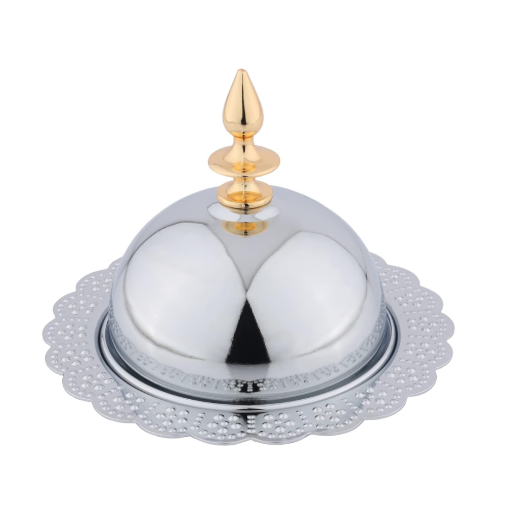 سكرية وتمرية دائرية مع غطاء من السيف- مقاس كبير - لون كروم مع ذهبي