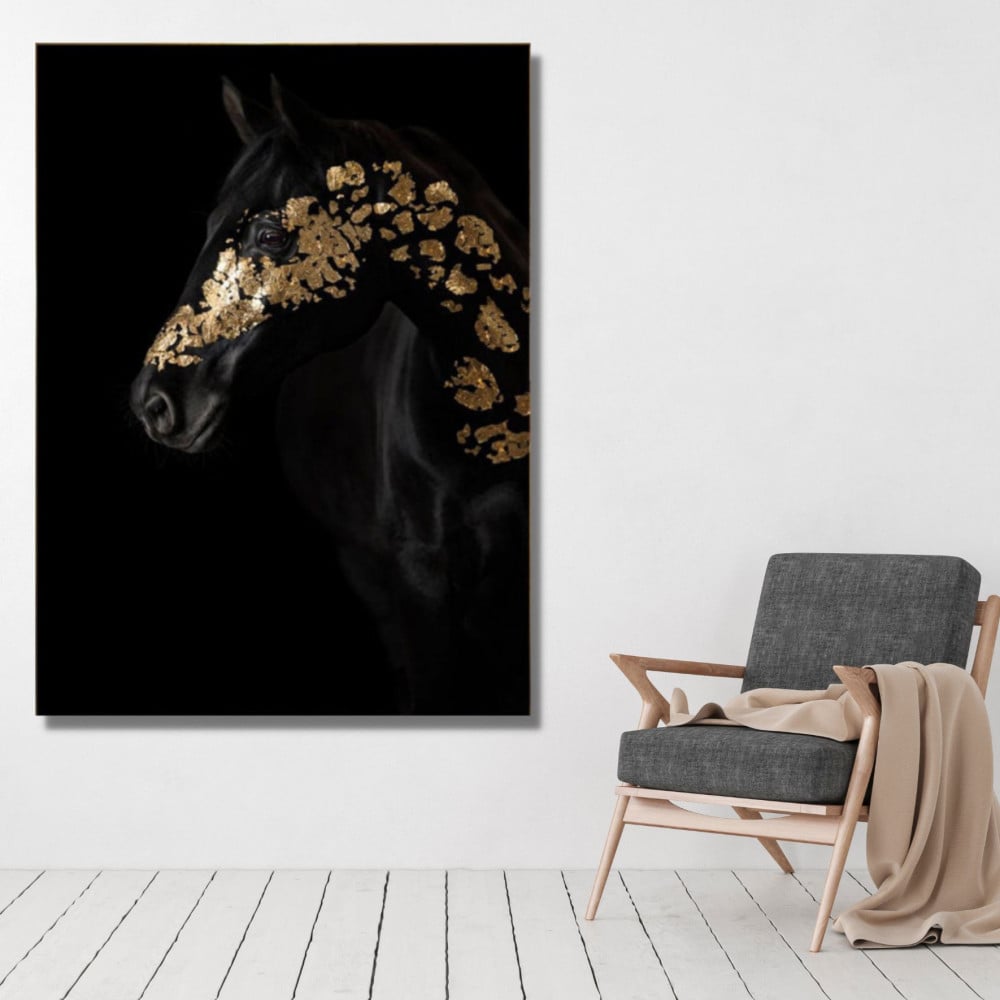 لوحة مطبوعة على لوح اكريلك- خيل اسود بتصميم عصري