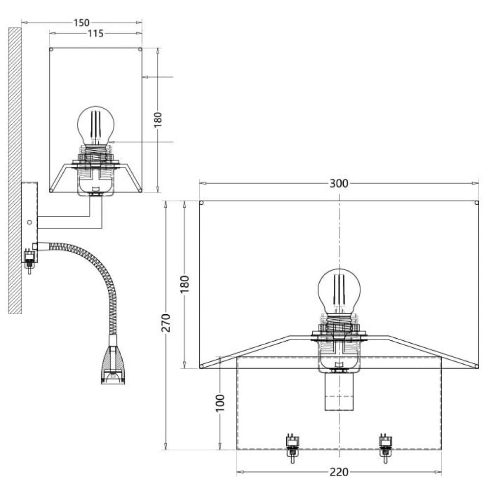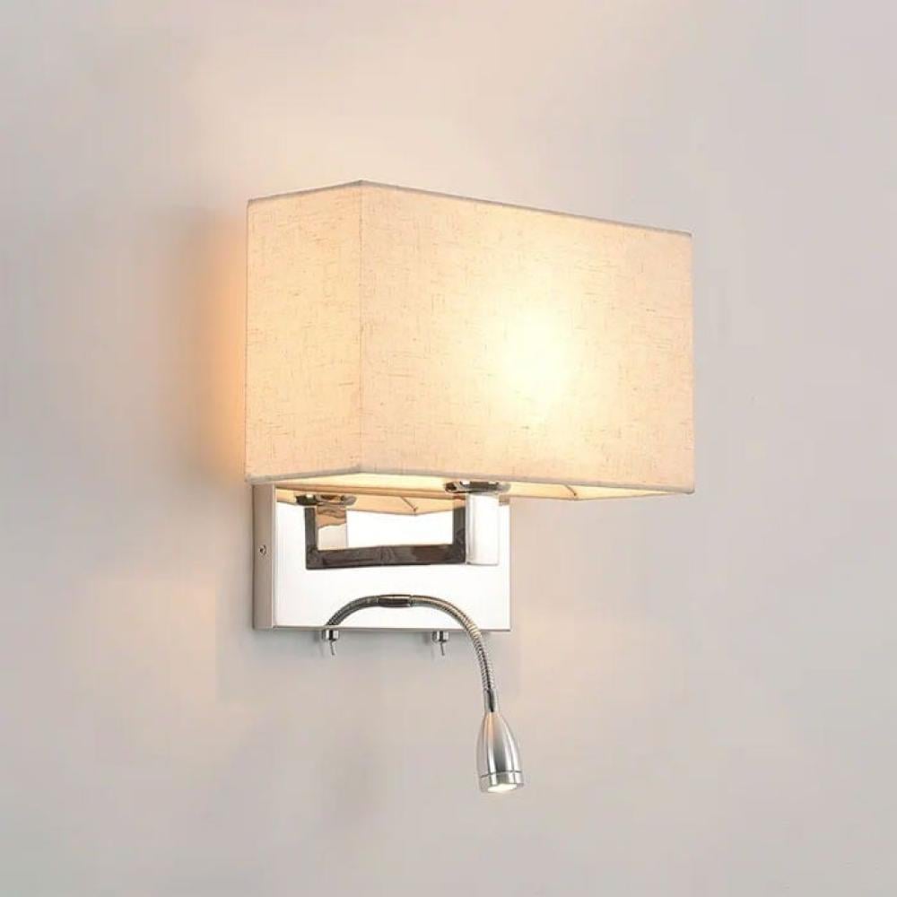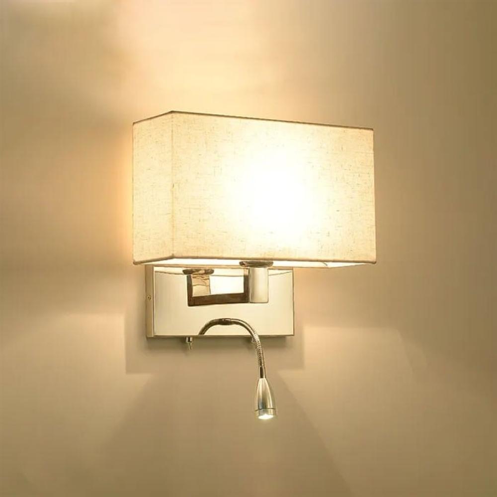 اضاءة جدارية أبليك فندقي كروم شيد مستطيل مع كشاف شيد بيج