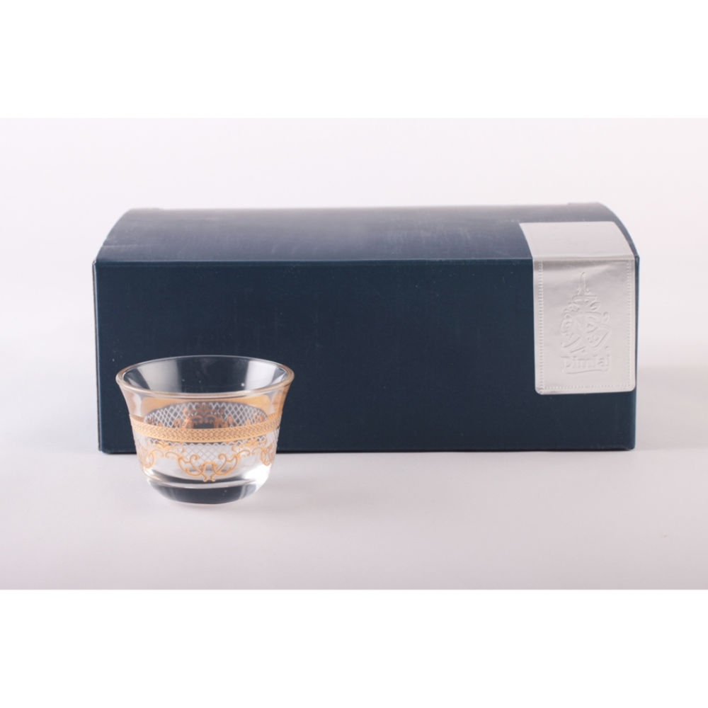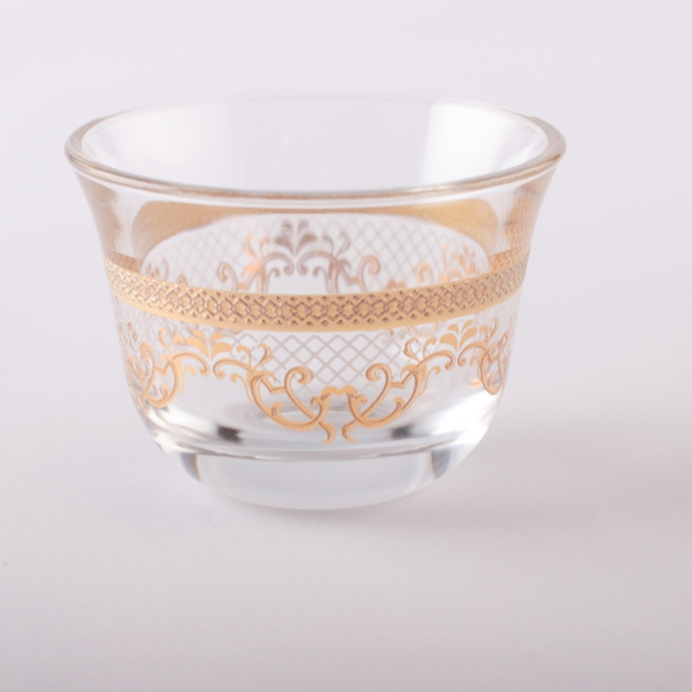 طقم فناجين قهوة عربية زجاجية مذهبة بزخرفة هندسية عصرية وانيقة