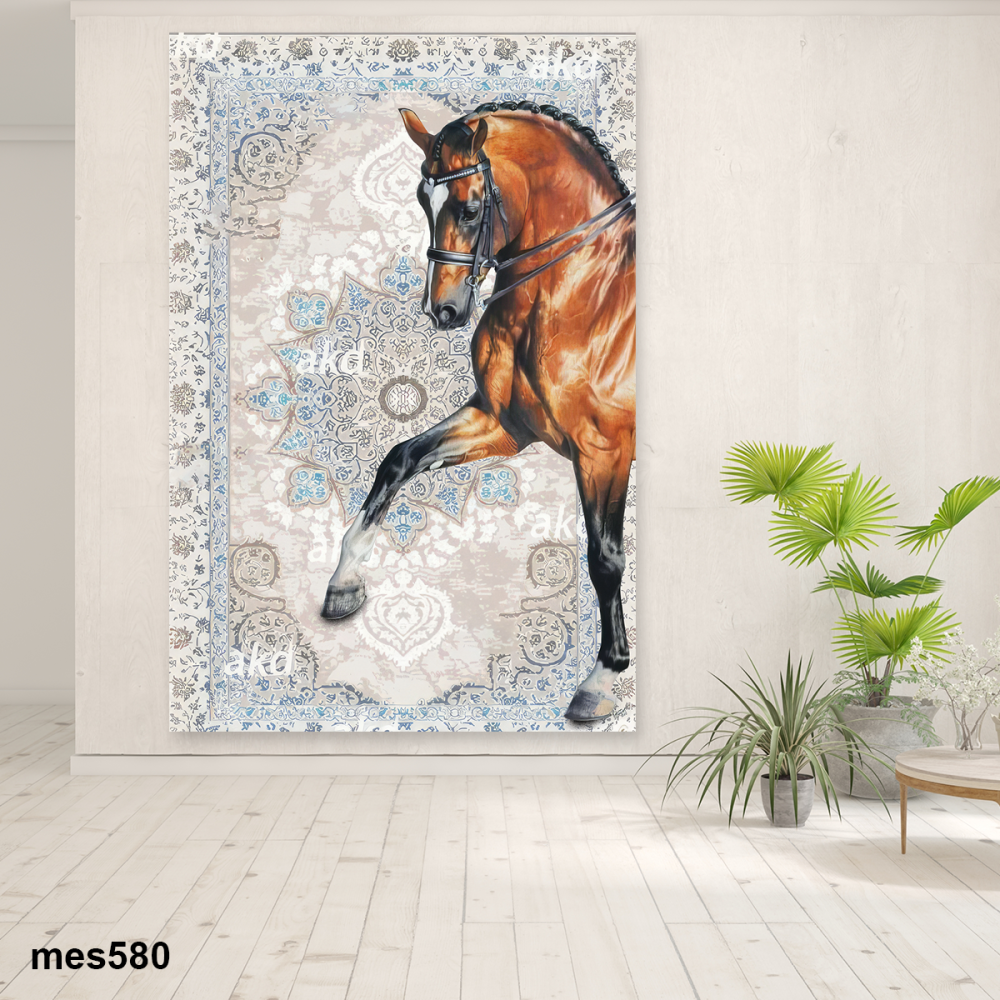 لوحة جدارية مطبوعة بخلفية سجاد وكولاج صورة خيل