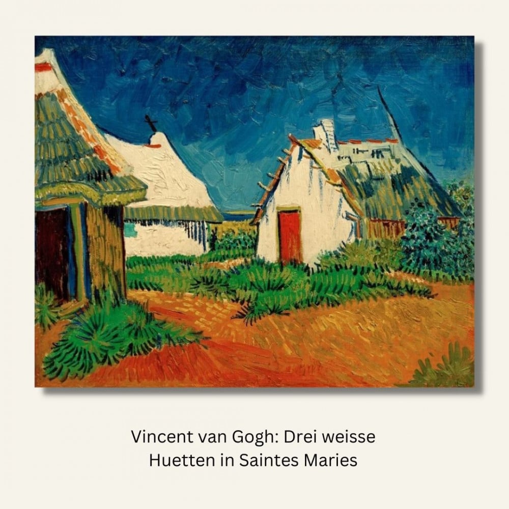 لوحة باسم (Drei weisse Huetten in Saintes Maries) لوحه رسمها فان جوخ 1890