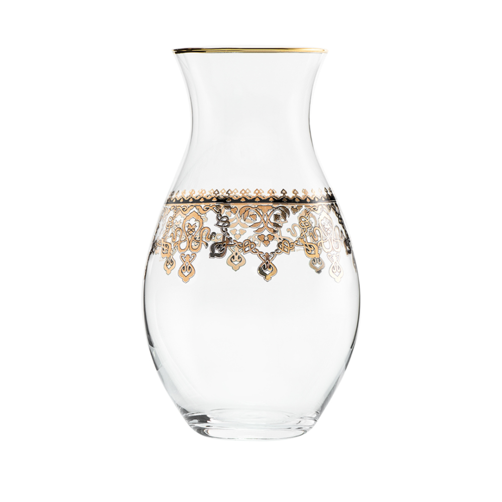 مزهرية زجاجية مذهبة بزخرفة عصرية وانيقة