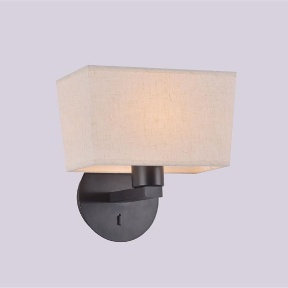 إنارة جدارية باللون الأسود قاعدة دائرية وشيد مستطيل بيج مع مفتاح