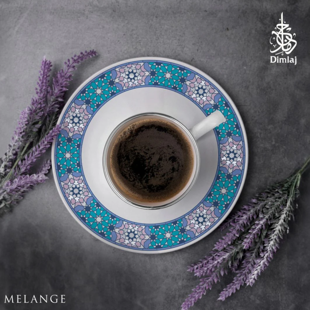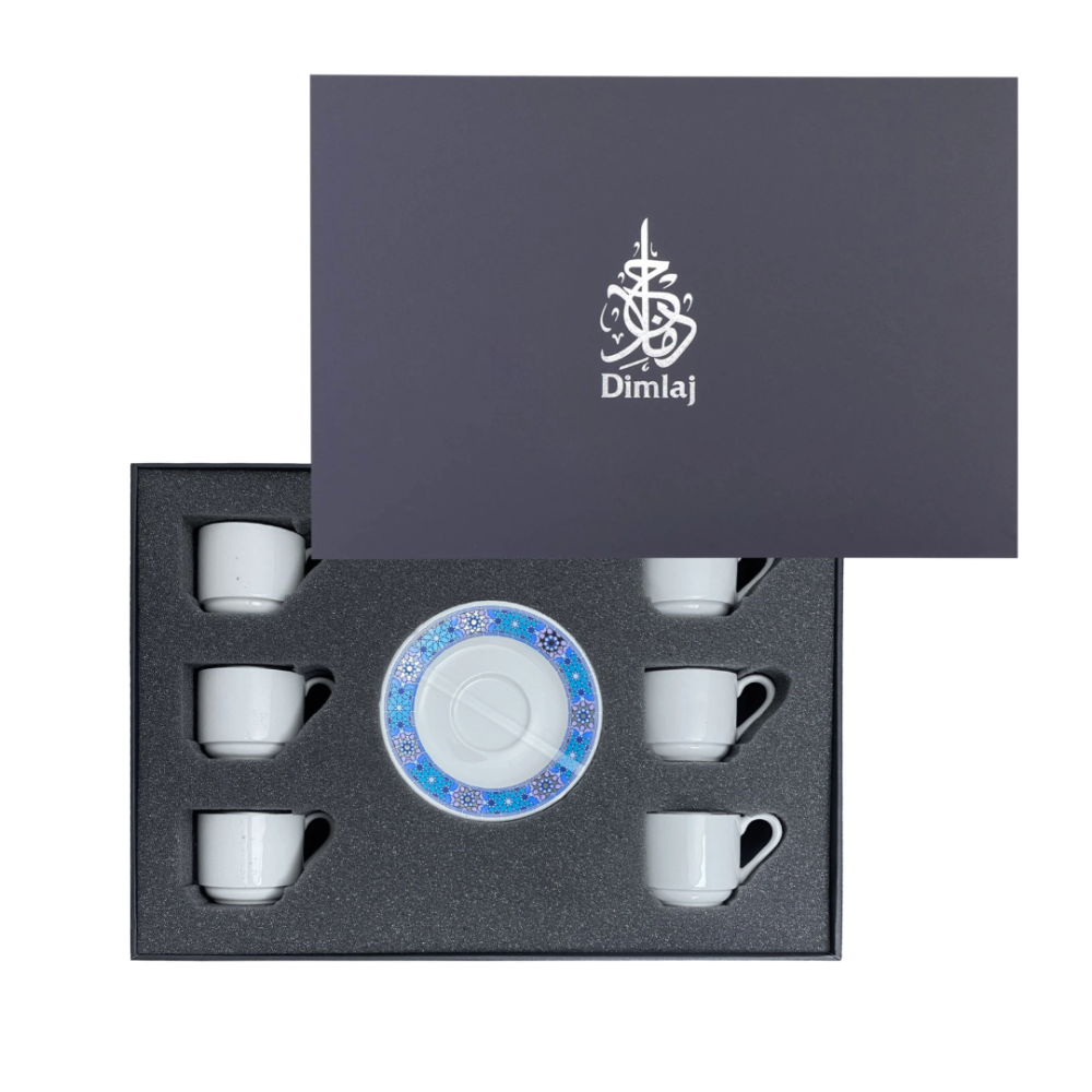 طقم فناجين قهوة بورسلان فاخر بزخرفة ملونة انيقة مستوحاة من فن البلاط المغربي
