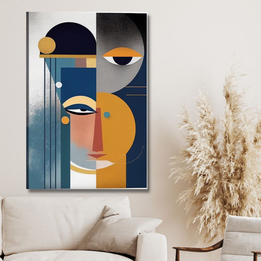 لوحة جدارية تشكيلية - فن تكعيني - مطبوعة على لوح اكريلك