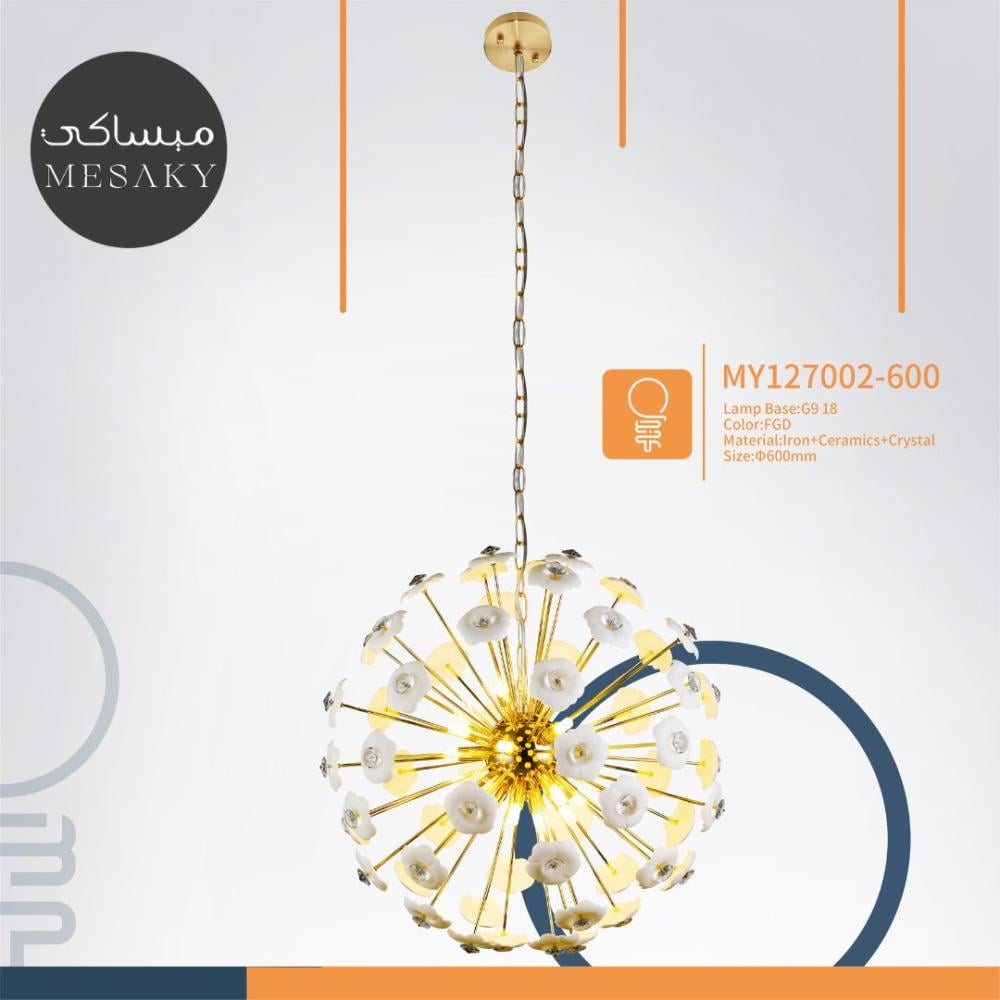 تأثير جمالي: تقدم ثريا تأثيرًا جماليًا مميزًا، سواء كانت مضاءة أو حتى عندما لا تكون في وضع التشغيل تصبح قطعة ديكور رائعة لتحسين جاذبية المكان