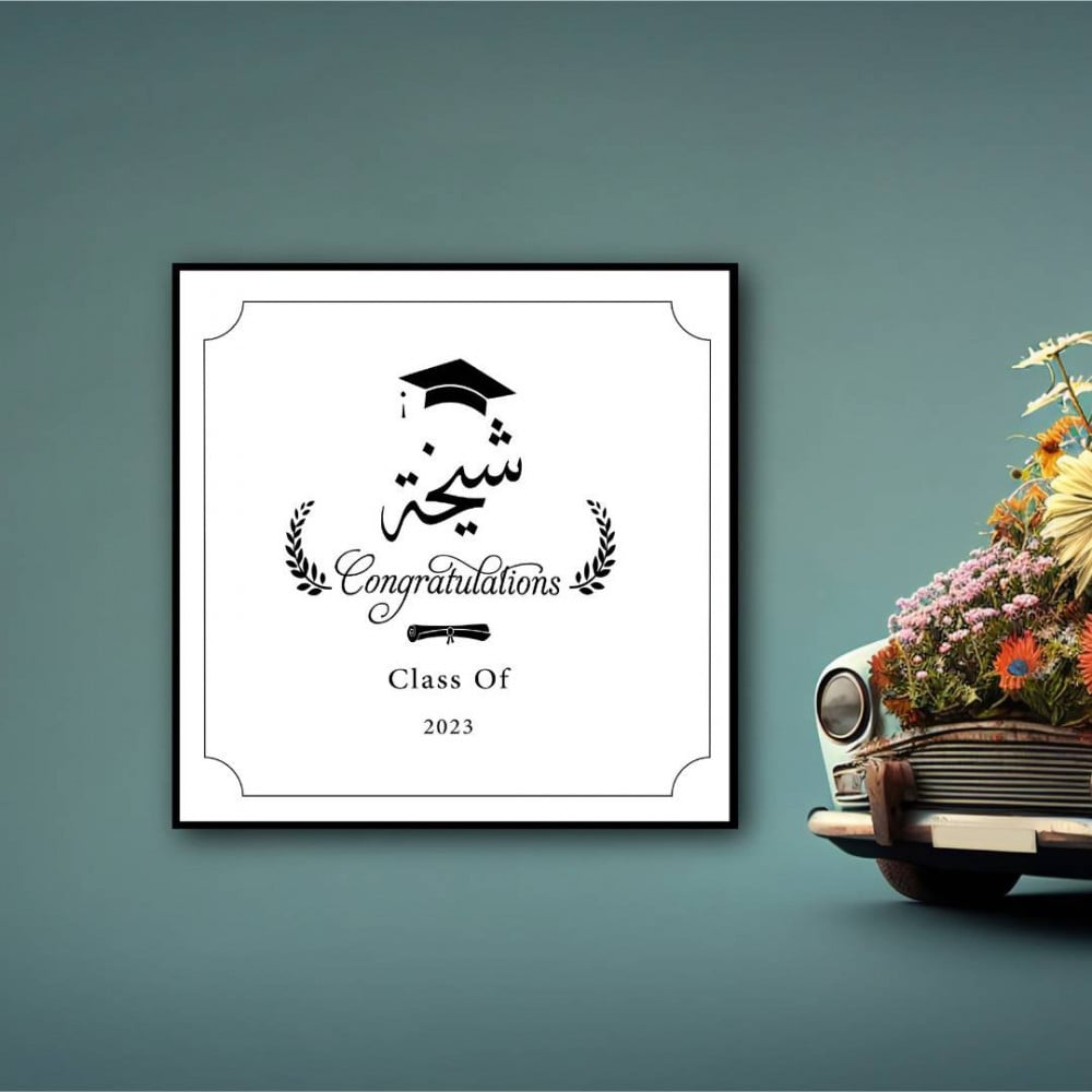 - عند الطلب، عليك تزويدنا في خانة الملاحظات باسم الخريج الذي ترغب في كتابته في تصميم اللوحة
