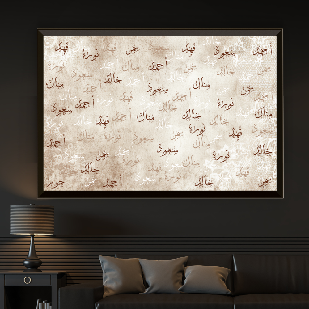 • عند الطلب، عليك تزويدنا في خانة الملاحظات بالاسم الذي ترغب في كتابته في تصميم اللوحة