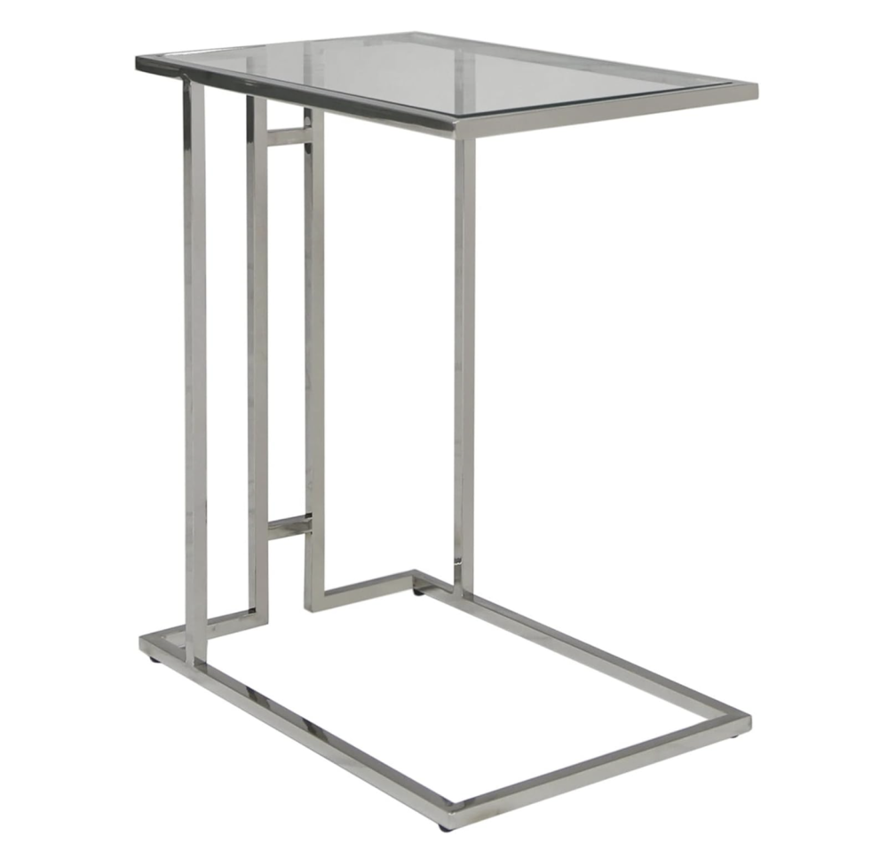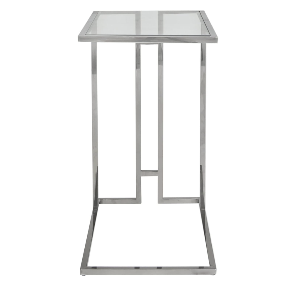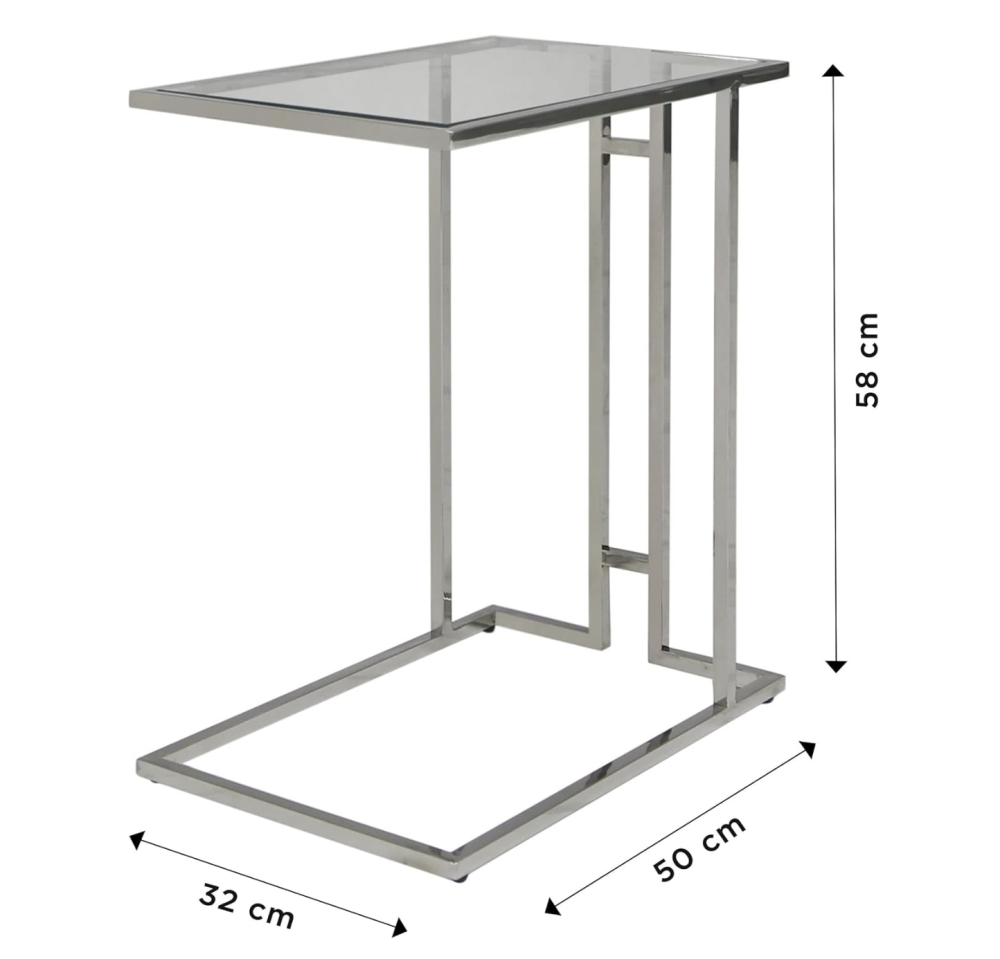طاولة خدمة سطح زجاجي وقاعدة فضية