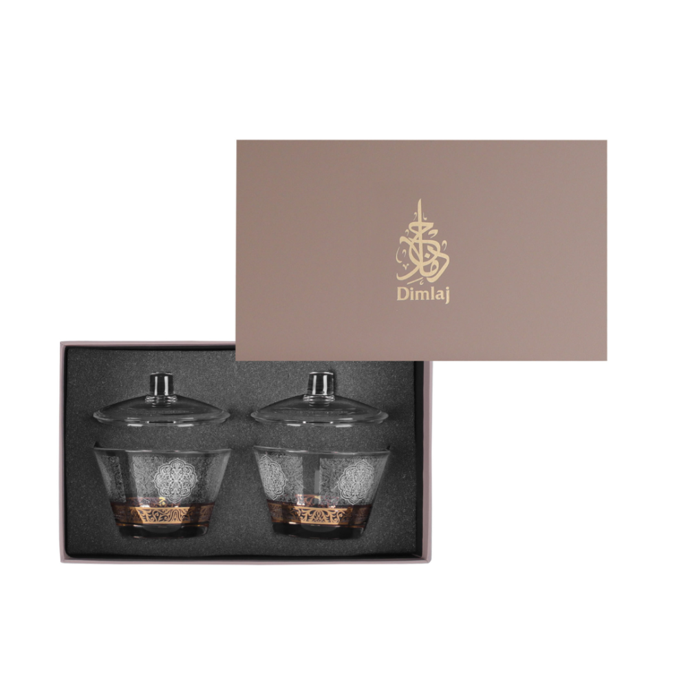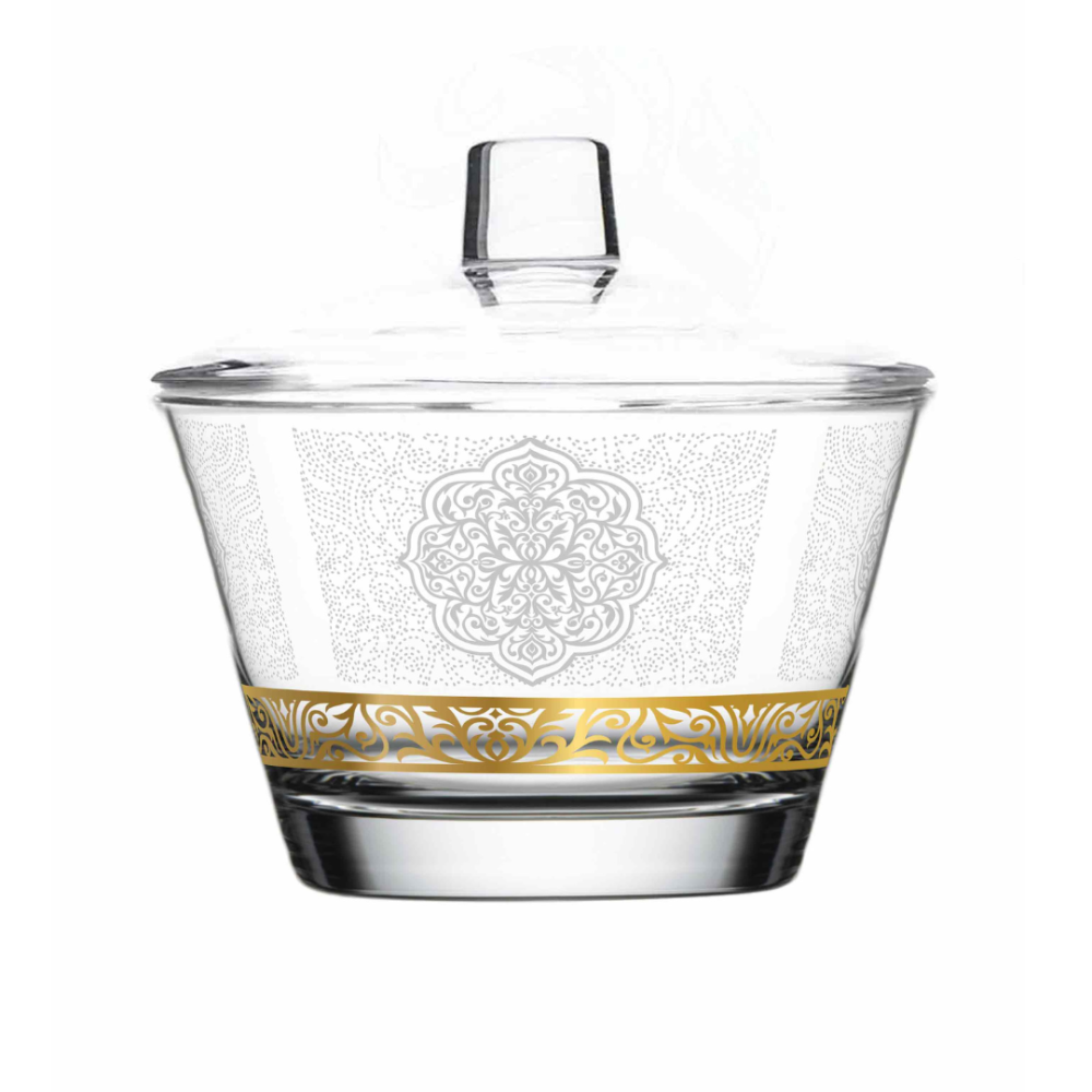 طقم سكرية زجاجية مذهب فضي بزخرفة هندسية عصرية وانيقة