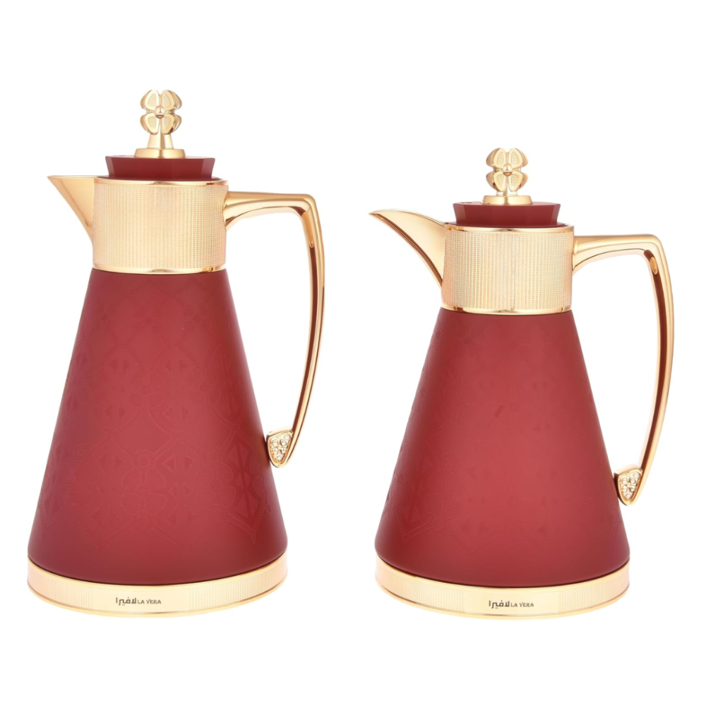 طقم ترمس حراري للشاي والقهوة قطعتين من السيف- سعة 1- 1.7 لتر - لون عنابي مذهب
