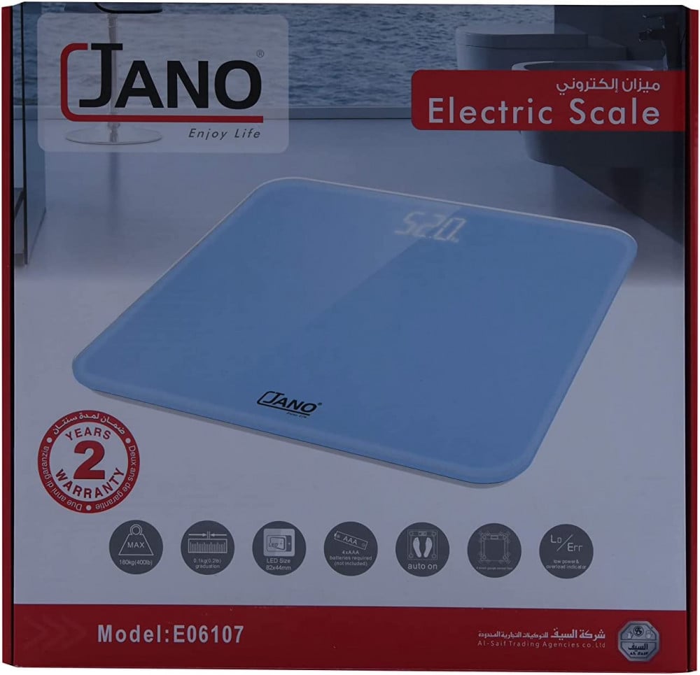 ميزان حمام الكتروني من الزجاج المُقسّى 1.5 فولت تيار مستمر من السيف، لون أزرق سماوي