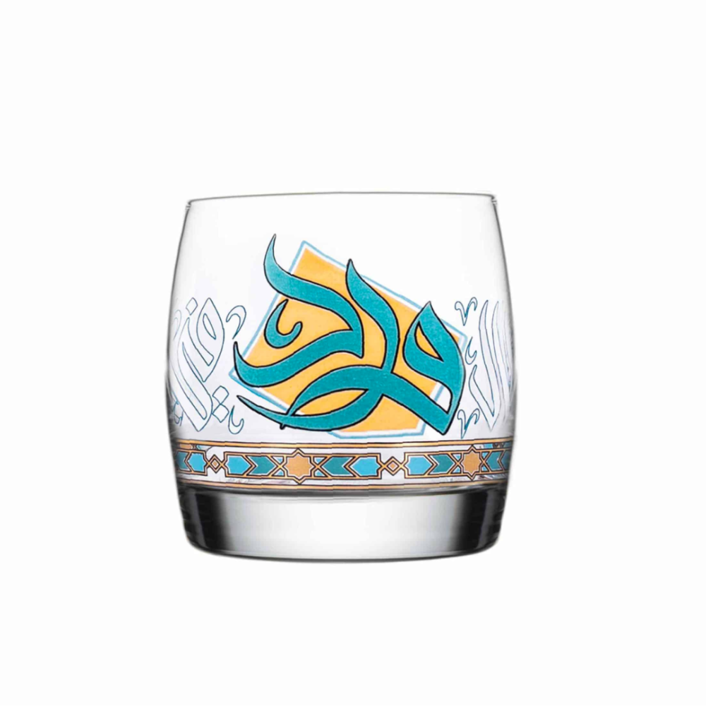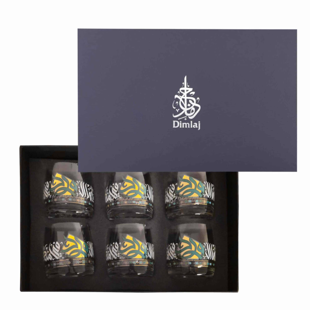 طقم كاسات عصير كريستال مذهب فاخر بزخرفة عريقة من الخط العربي