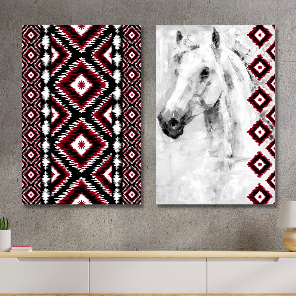 طقم من لوحتين كنفاس جدارية الخيل مع السدو