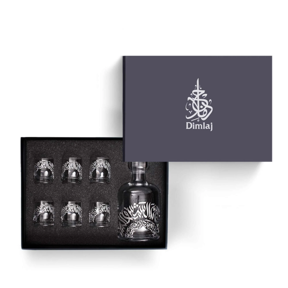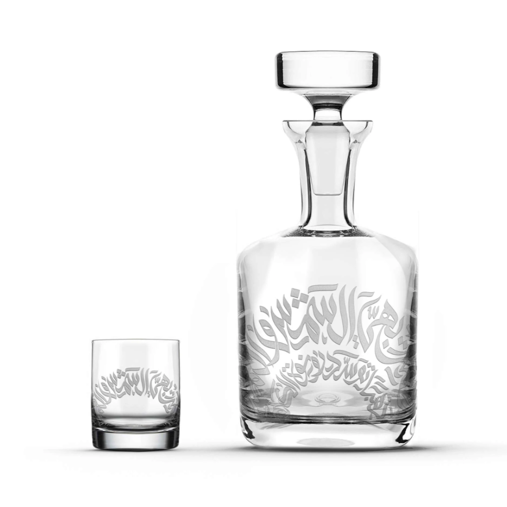 طقم شراب زجاجي فاخر محفور بزخرفة انيقة من الخط العربي