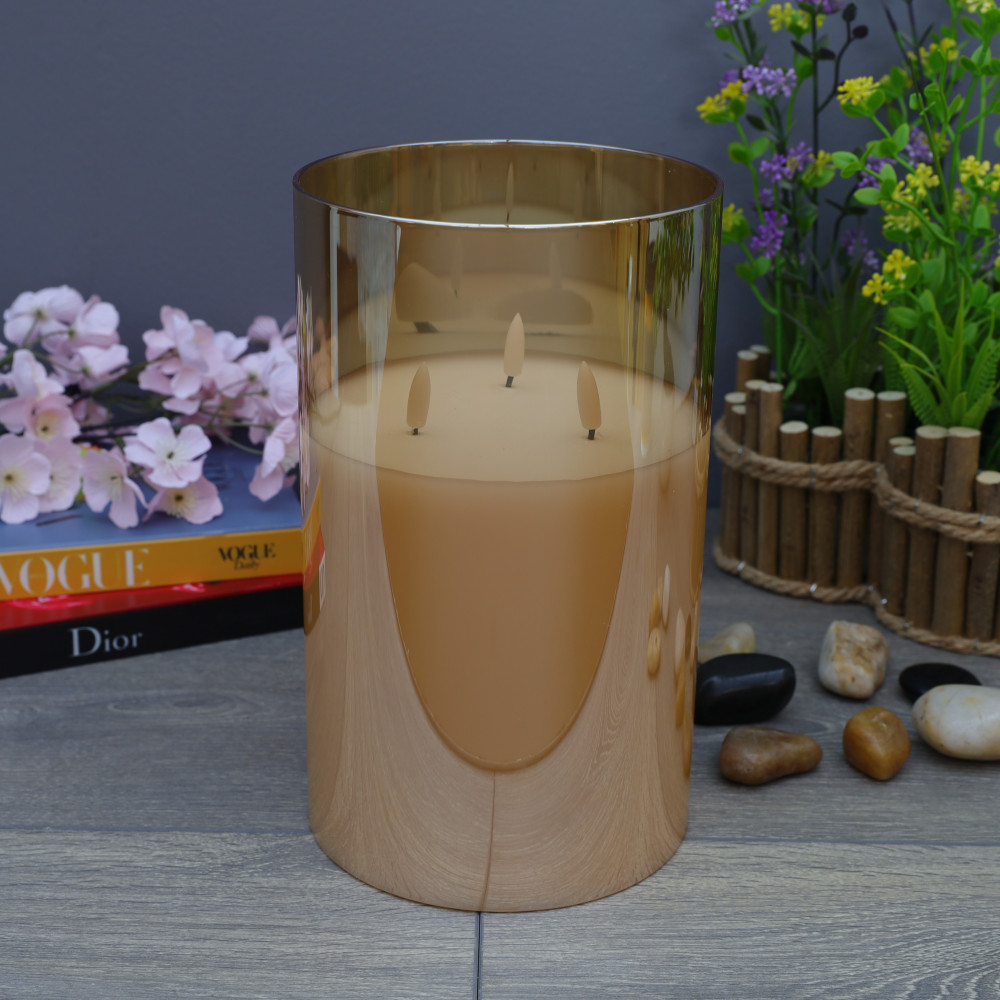 اضئ منزلك بشموع تدوم طويلا واخلق جواً هادئا في المنزل، الزجاج الذهبي سيعكس انارة صفراء في محيطك، استخدمها على الطاولات الجانبية او الرفوف والممرات لتحفزك على الاسترخاء