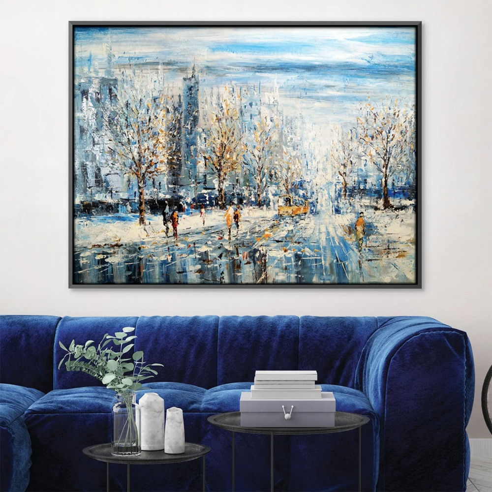 كما أن التفاصيل مثل الإطارات الخشبية الدافئة أو الذهبية الهادئة تزيد من الإحساس بالدفء والفخامة. لوحة تجذب العين يجعل انتباه الزائر يتركز عليها بدلًا من التركيز على برودة المساحة، كما أن ألوان اللوحة يمكن أن تُستَخدم كأساس لاختيار الوسائد والسجاد. وإليك بعض أجمل لوحات حائط ديكور مثالية للشتاء: