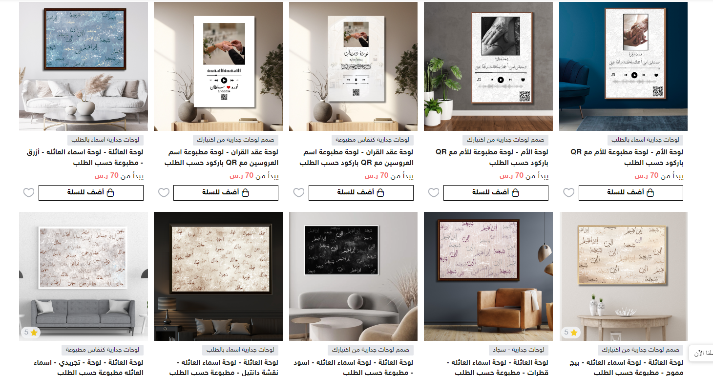 بالإضافة إلى ذلك، نوفر لك خدمة طباعة اللوحات حسب الطلب، حيث يمكنك تصميم اللوحة التي تحلم بها لتجعل منها قطعة فريدة تعبر عن ذوقك الشخصي. وكذلك طباعة لوحة اسماء العائلة أو لوحة شجرة العائلة وأي لوحة أخرى مميزة حسب الطلب مثل لوحة أسماء الله الحسنى أو لوحات اسماء مواليد أو لوحات تخرج بالاسم وغيرها الكثير بأعلى جودة وأفضل سعر في المملكة العربية السعودية.