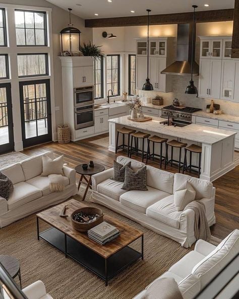 - الإضاءة الطبيعية: يستمد الطراز الريفي جماله من الإضاءة الطبيعية. النوافذ الكبيرة والخامات الشفافة تُعطي شعورًا بالانفتاح والتواصل مع البيئة الخارجية.