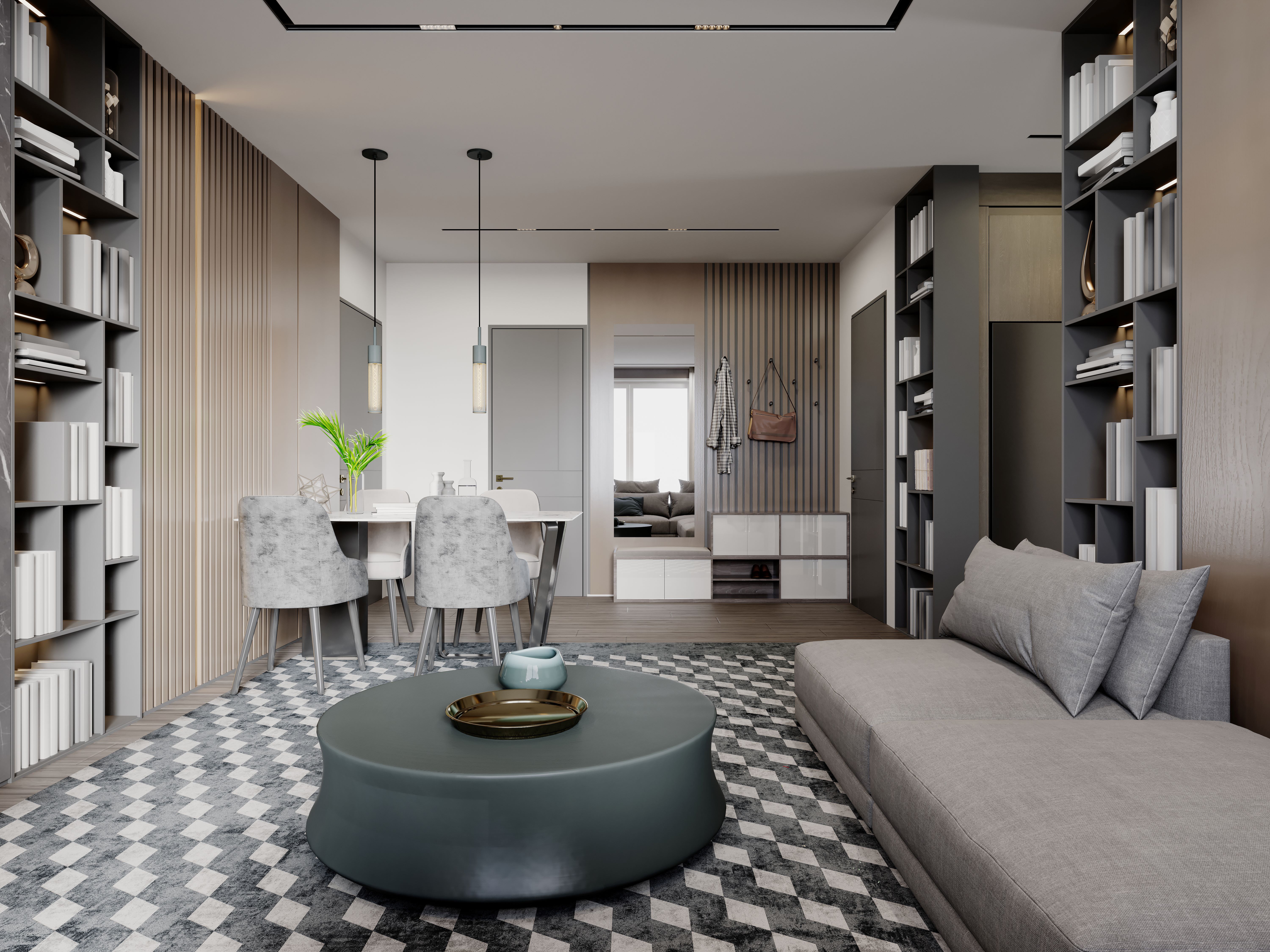 • الألوان المحايدة والعصرية: يُستخدم مزيج من الألوان المحايدة مثل الأبيض والأسود والرمادي، مع إمكانية إضافة لمسات من الألوان الجريئة لإضفاء حيوية وشخصية على المساحة.