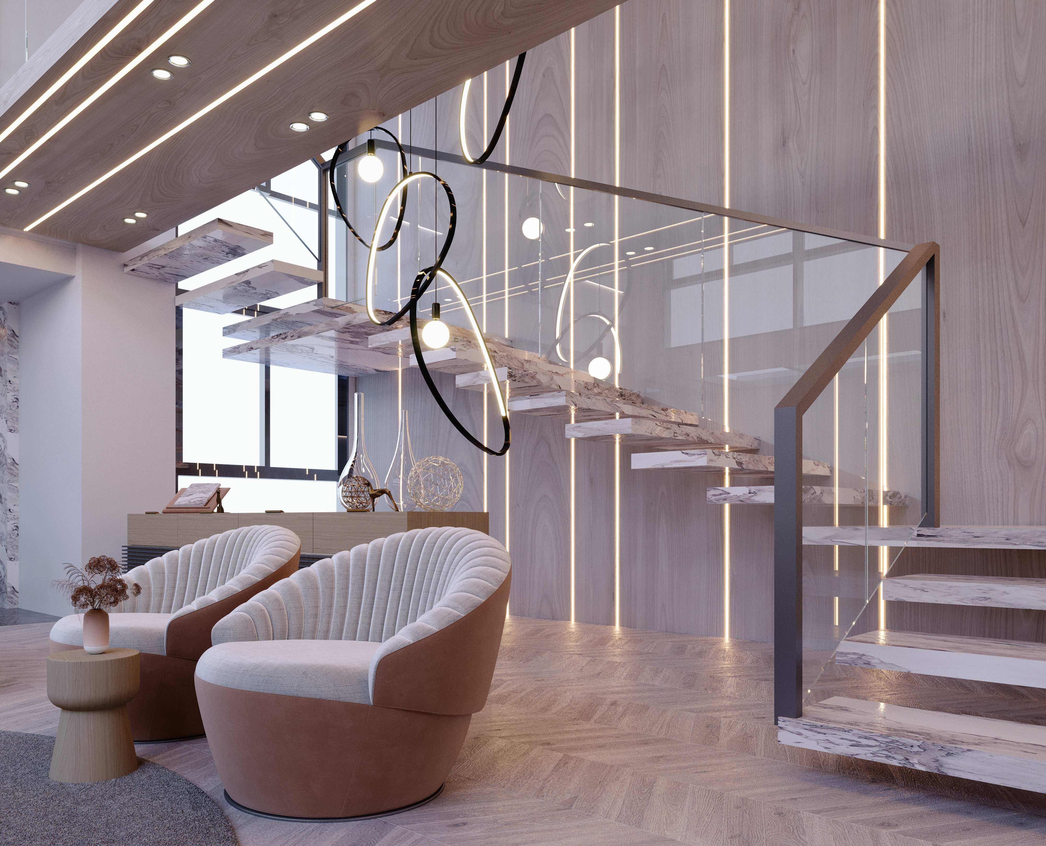 - الإضاءة الذكية: وزع الإضاءة بين وحدات السقف أو إنارة معلقة والأباجورات لتوضيح كل منطقة على حدة.