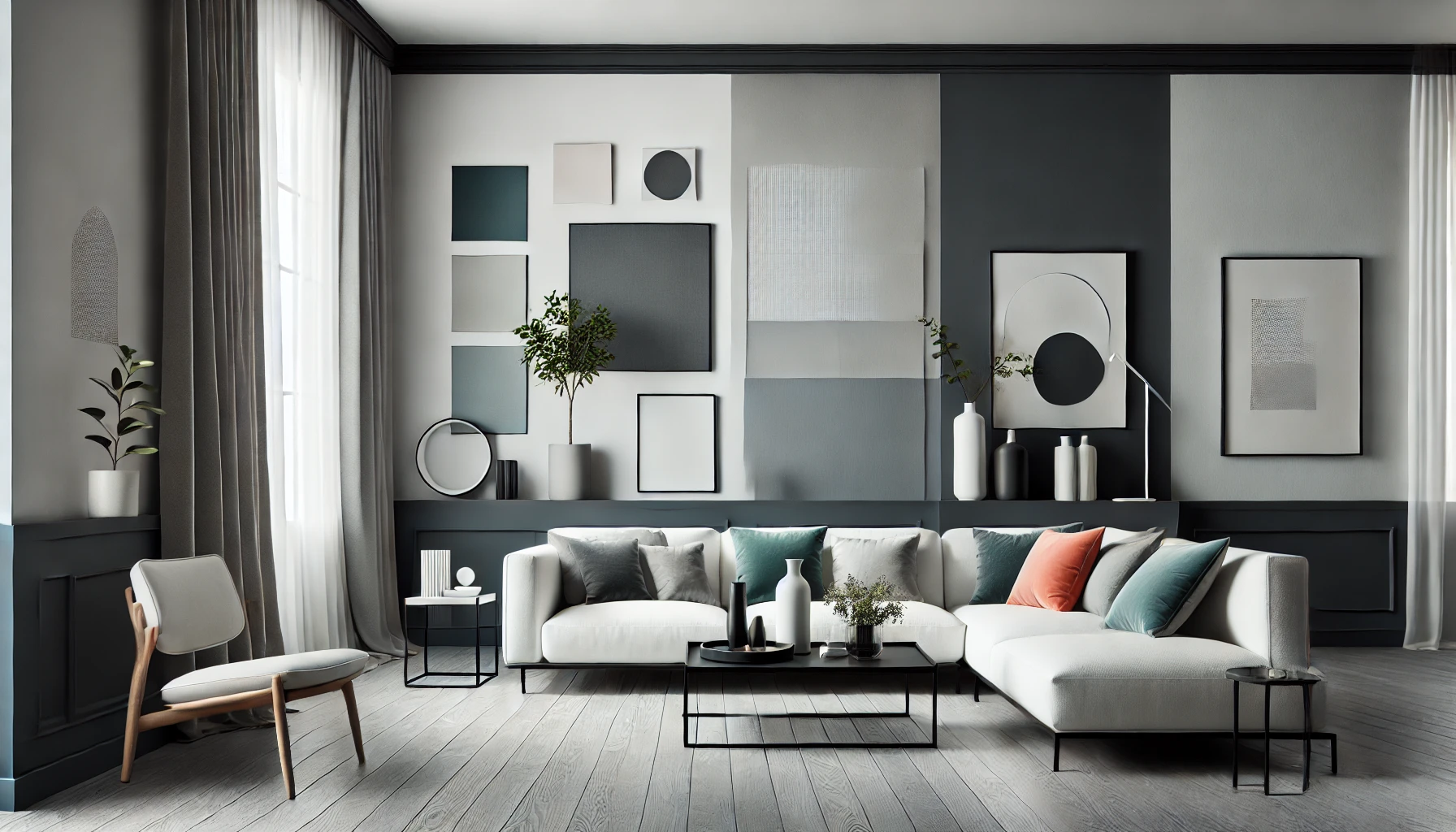 - الألوان المحايدة: اجعل الأبيض، الرمادي، والبيج قاعدة أساسية، مع إدخال لون جريء كالأزرق الداكن أو الأخضر الزيتوني لإبراز التفاصيل.