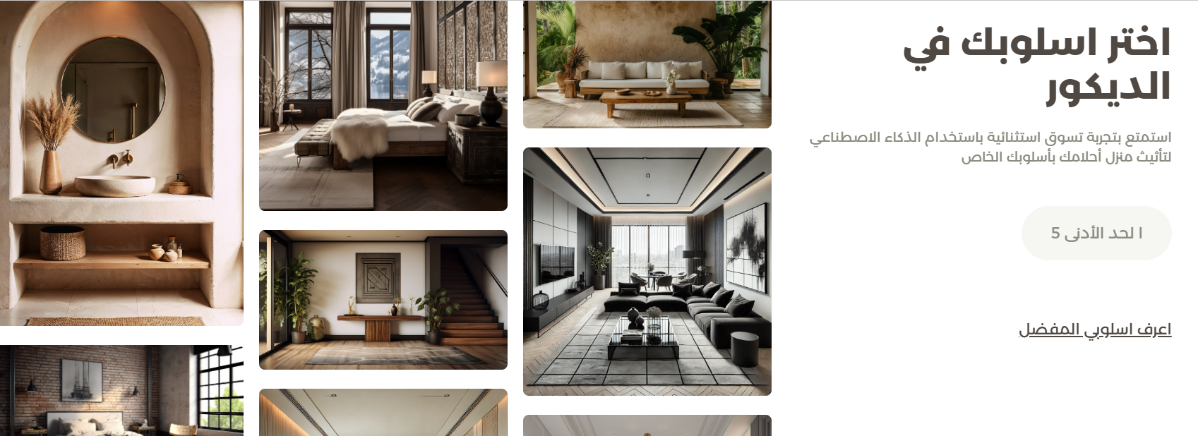 - يستخدم الذكاء الاصطناعي لفهم تفضيلاتك في التصميم الداخلي والأثاث وكذلك الديكور.