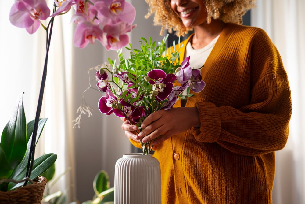 إذا كانت الفازة طويلة، اختر ورودًا ذات سيقان طويلة للحفاظ على التوازن. أما الفازات العريضة أو القصيرة، فتناسبها البوكيهات المتوسطة أو فازات ورد ميني. فتلك واحدة من أهم النصائح التي تحتاج لإتباعها عند تنسيق فازات ورد صناعي.