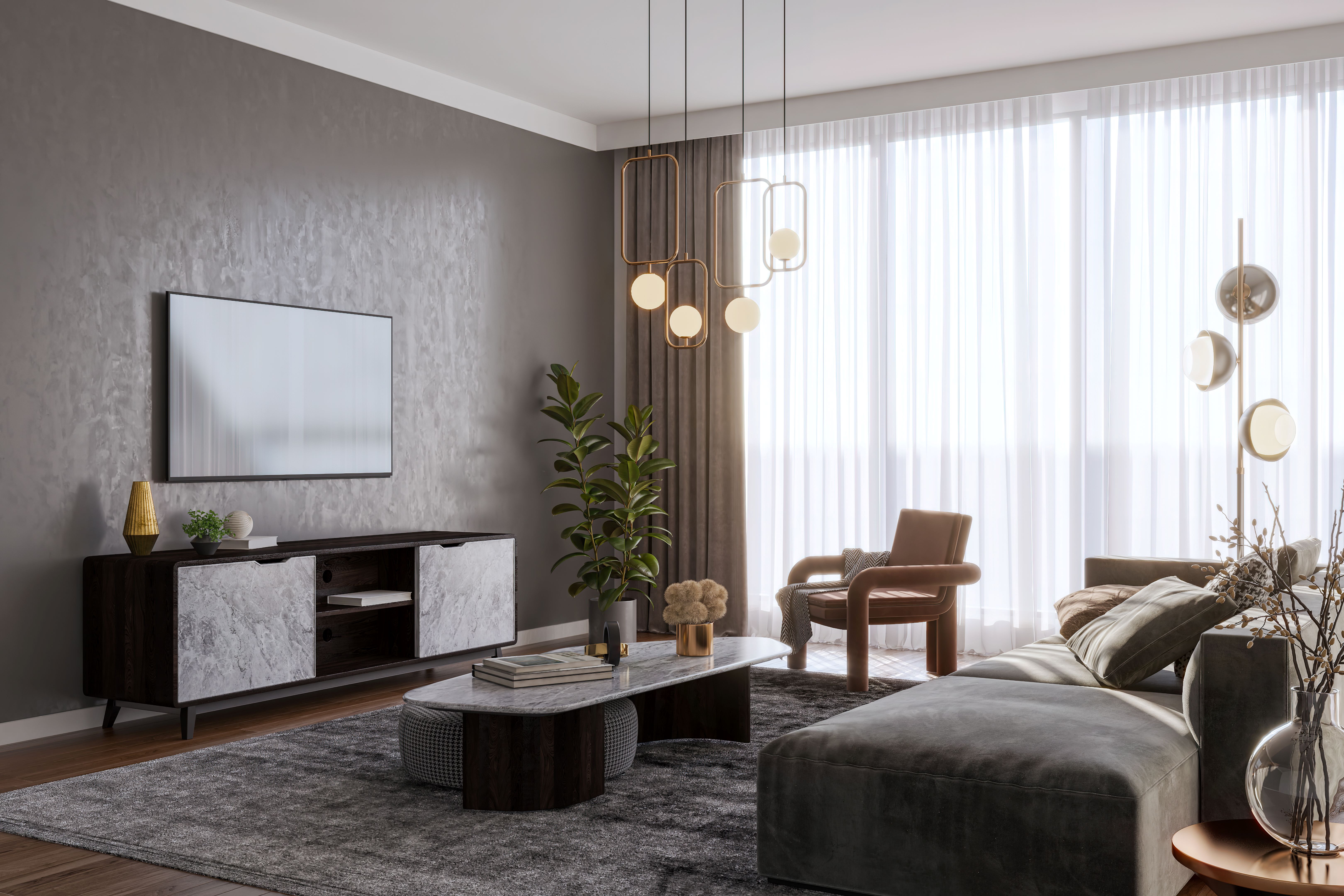 - المواد الطبيعية: يكثر استخدام المواد الطبيعية مثل الخشب، الرخام، والجلد. مما يضيف طابعًا دافئًا وطبيعيًا للمساحة.