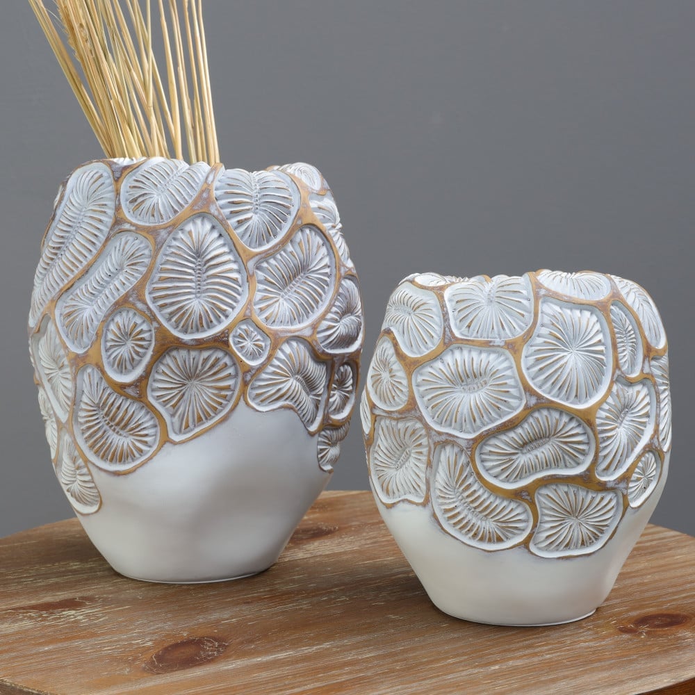 - تسوق فازه ورد فايبر باللون الابيض مع زخارف بنية منحوتة متاحة بمقاسين من ميساكي بأفضل سعر بالسعودية: