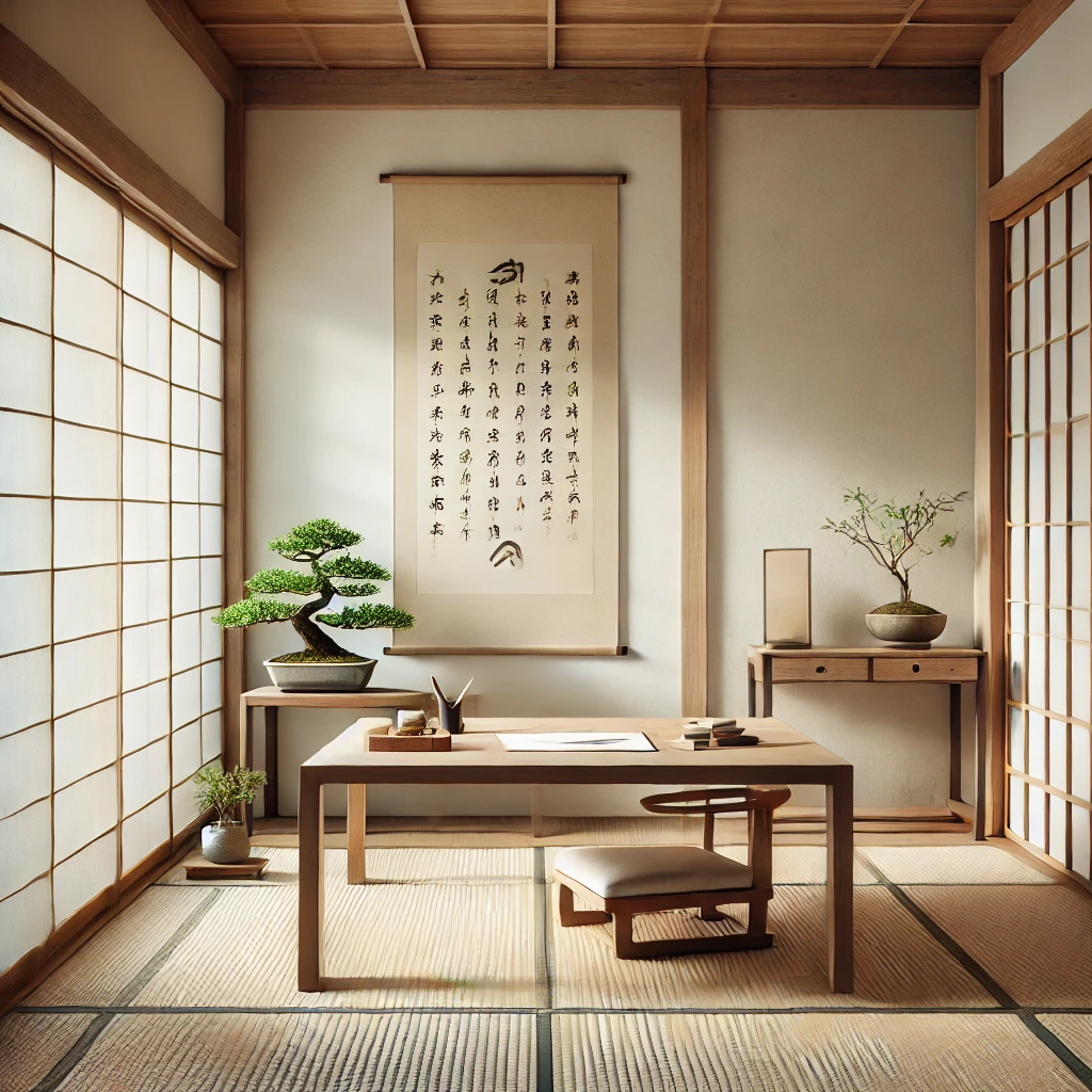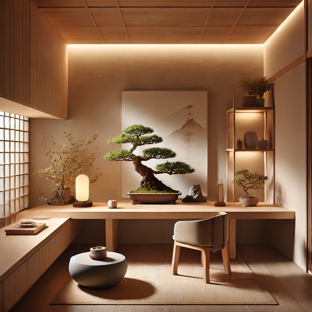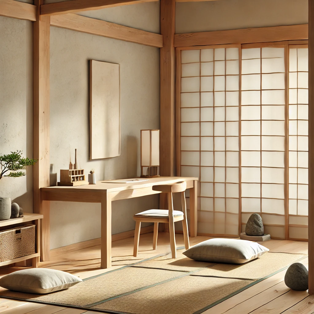 عناصر أسلوب Zen في تصميم مكتب منزلي بسيط