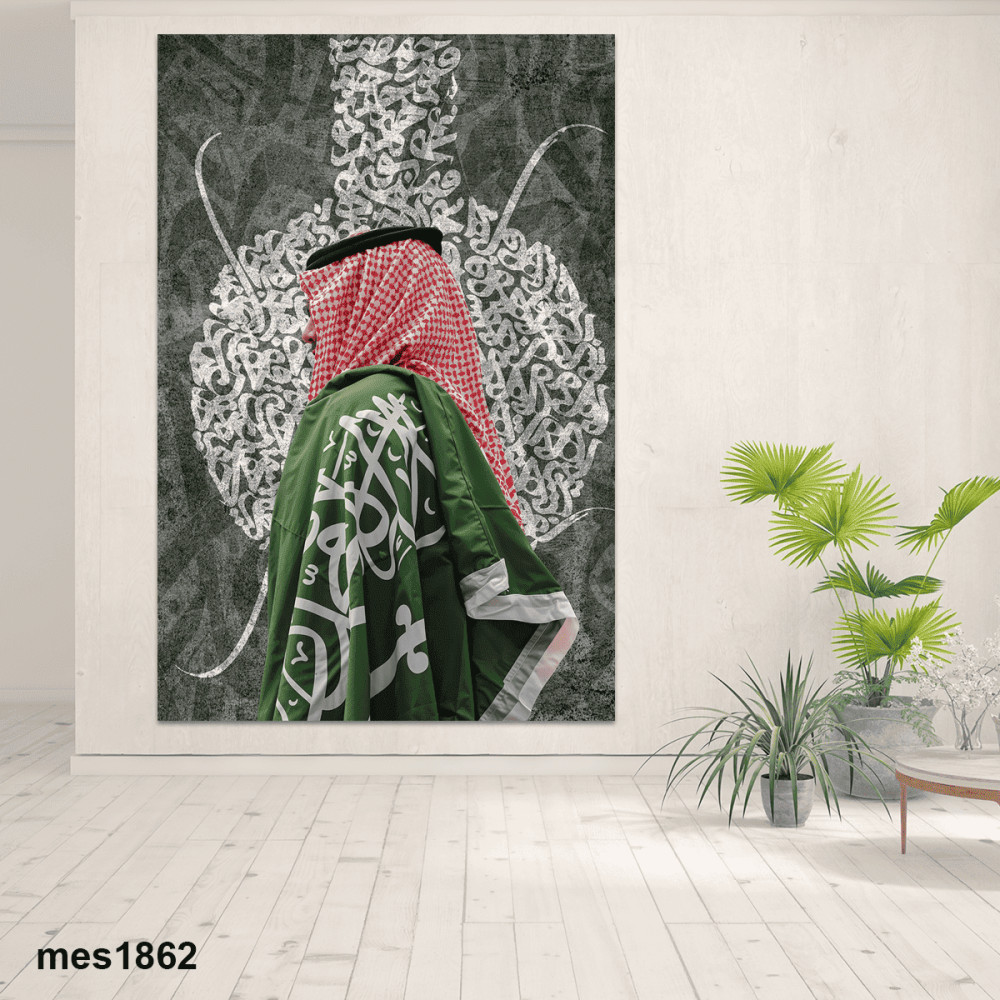 تجسّد هذه اللوحة الاعتزاز الوطني بكل تفاصيلها، حيث يظهر رجل سعودي يحمل العلم على كتفه في مشهد مفعم بالعزة والانتماء. كما أن الخلفية المزينة بالخط العربي تضيف بعدًا فنيًا يربط التراث بالهوية الحديثة. لتصبح هذه القطعة أكثر من مجرد ديكور؛ إنها رسالة حب وفخر بالوطن. اقتنِها الآن من هنا واجعلها جزءًا من احتفالك.