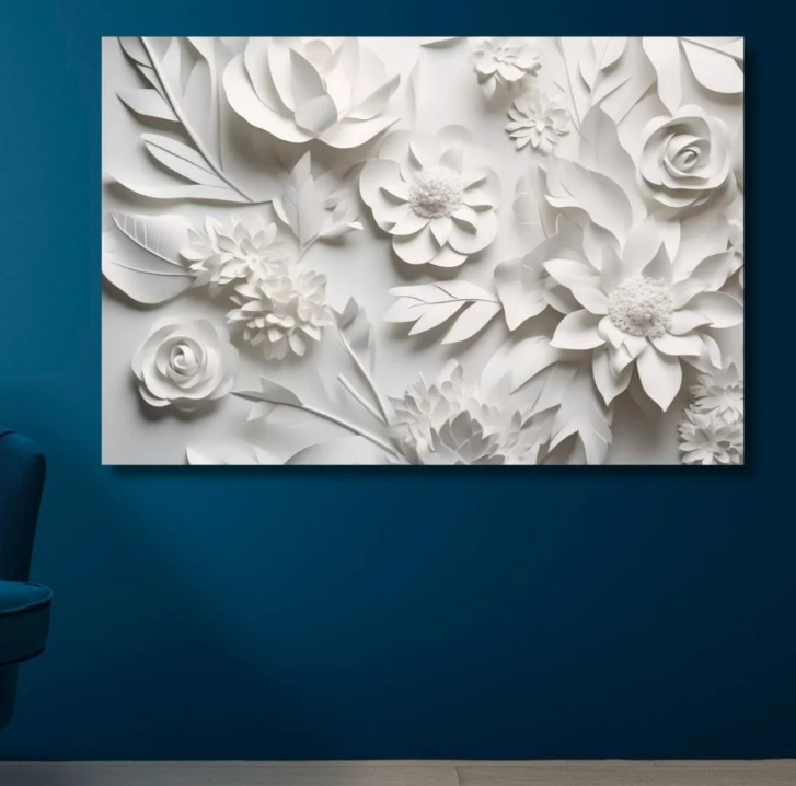 - لوحة جدارية فنية جبسية ورود تدمج بين جمال اللون الجبسي الأبيض مع لمسات مميزة على الورود باللون البني الفاتح مطبوعة بأحدث التقنيات الإسبانية على قماش الكنفاس عالي الجودة لتحاكي جمال اللوحات الجبسية.