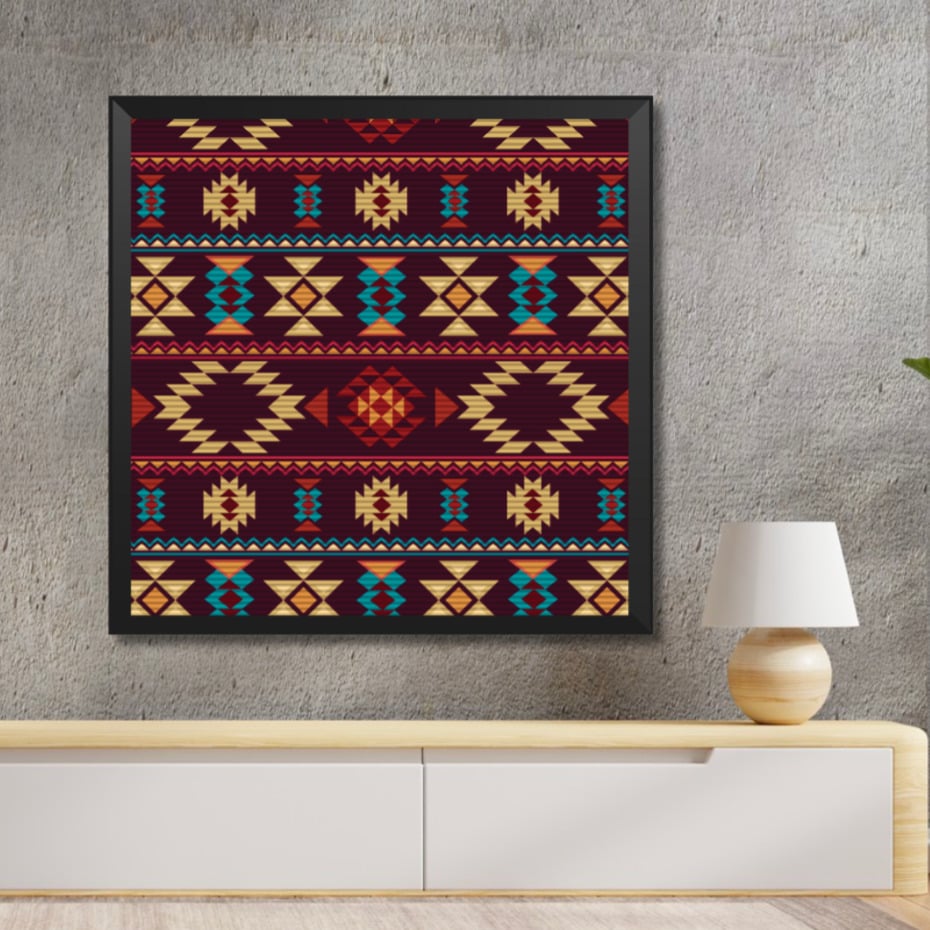 أحد أفخم لوحات جدارية تراثية فخمة المستوحاة من فن القط العسيري المعروف بألوانه وزخارفه الهندسية المبهجة، تقدم هذه اللوحة روحًا فنية نابضة بالحياة تعكس جمال التراث الجنوبي في السعودية. كما أن وجود لوحة القط العسيري التراثي تلك في أي غرفة يضفي طاقة لونية مميزة ويكسر الجمود البصري، مما يجعلها مثالية للمساحات التي تحتاج إلى لمسة حيوية غير تقليدية.