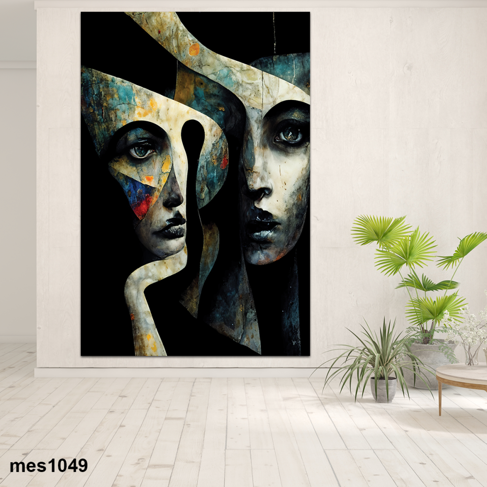 - لوحة جدارية مطبوعة على شكل وجه امرأتان من الفن التجريدي خيارًا مثاليًا للصالة التي تسعى للهدوء والرقي. كما تتميز بتدرجات لونية مُستوحاة من الطبيعة.