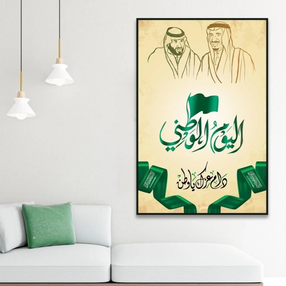 وفي هذا السياق، أصبحت لوحات جدارية لليوم الوطني إحدى الطرق الرائعة للاحتفال أو لإهداء الأصدقاء والأقارب. حيث تضيف هذه اللوحات لمسة فنية تحمل رموز المملكة وألوان العلم، وتمنح المنازل والمكاتب جوًا احتفاليًا يعكس الفخر الوطني ويخلد هذه المناسبة بأناقة وجمال.
