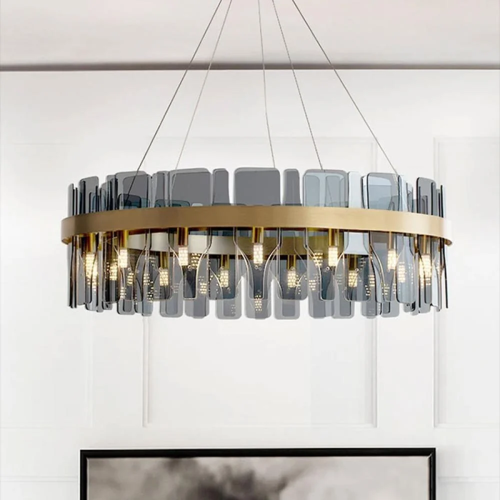 - انارة سقف معلقة ثريا دائرية زجاج سموك 16 لمبة تصميم عصري - المقاس 100 سم.