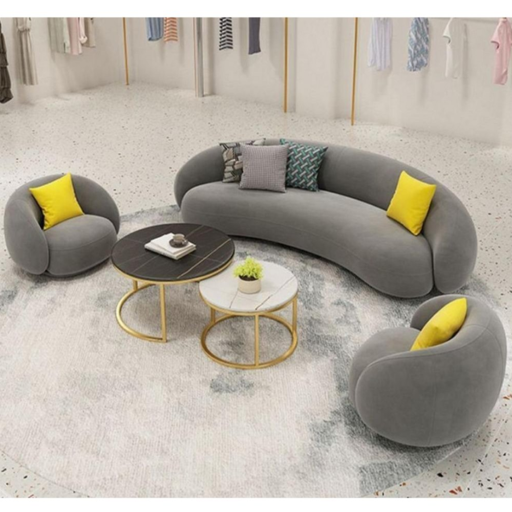 - كنب ثلاث مقاعد تصميم مودرن لون رمادي: يتميز بخطوطه الانسيابية التي تضيف لمسة من البساطة الراقية. ذلك مع خامة ناعمة مريحة تناسب الاستخدام اليومي، كما أن اللون الرمادي يمنحه طابعًا عصريًا يسهل تنسيقه مع الديكورات الداخلية للمنزل المختلفة.