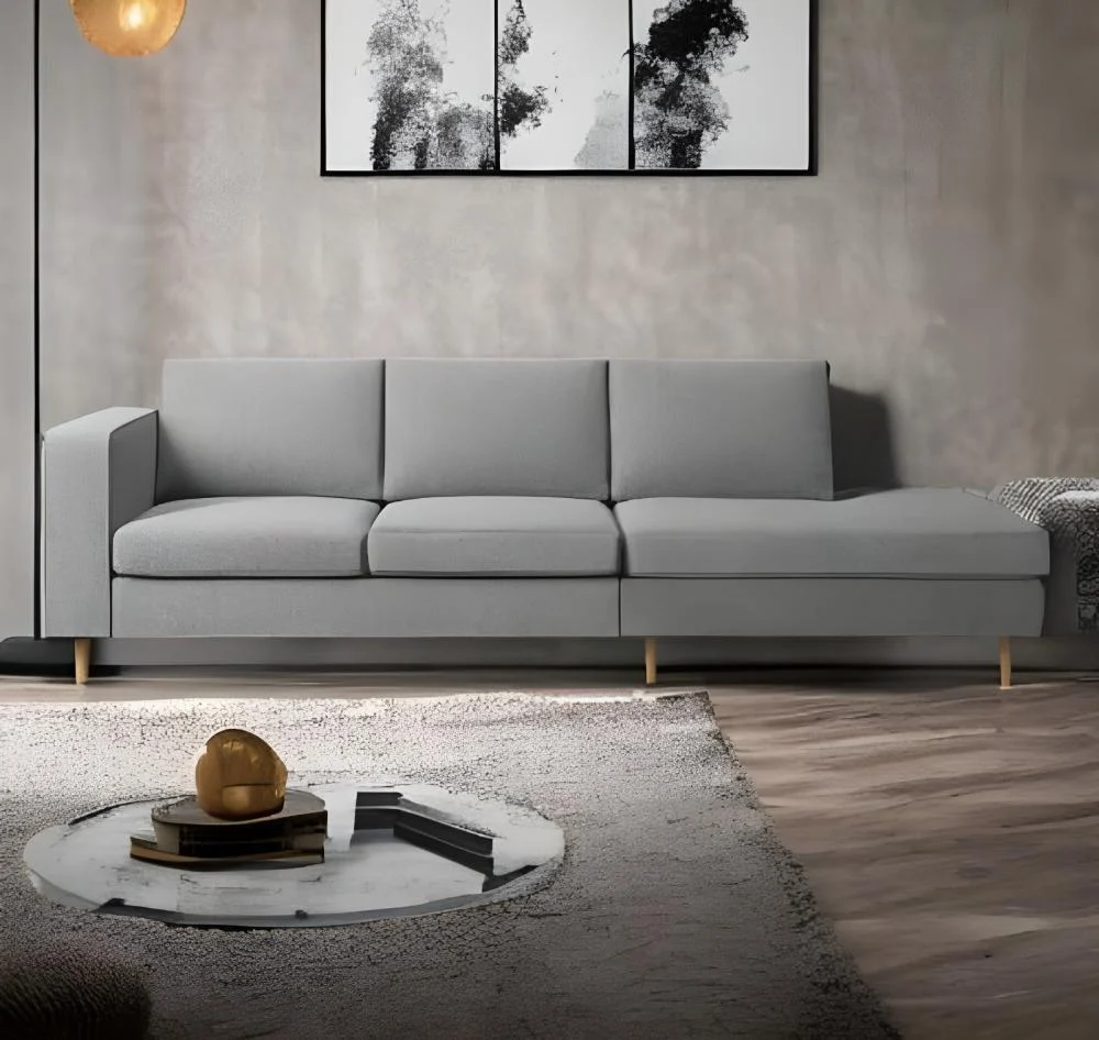 - اختر كنبًا بخطوط بسيطة: الكنب المودرن ذو القاعدة المرتفعة والظهر المنخفض يجعل الغرفة تبدو أكثر اتساعًا.