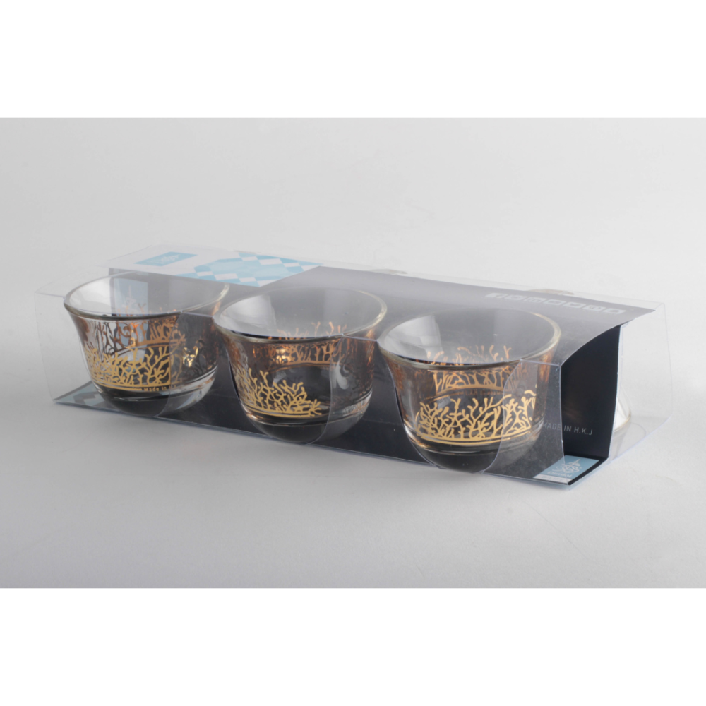 طقم فناجين قهوة عربية زجاجية مذهبة بزخرفة انيقة مستوحاة من الطبيعة