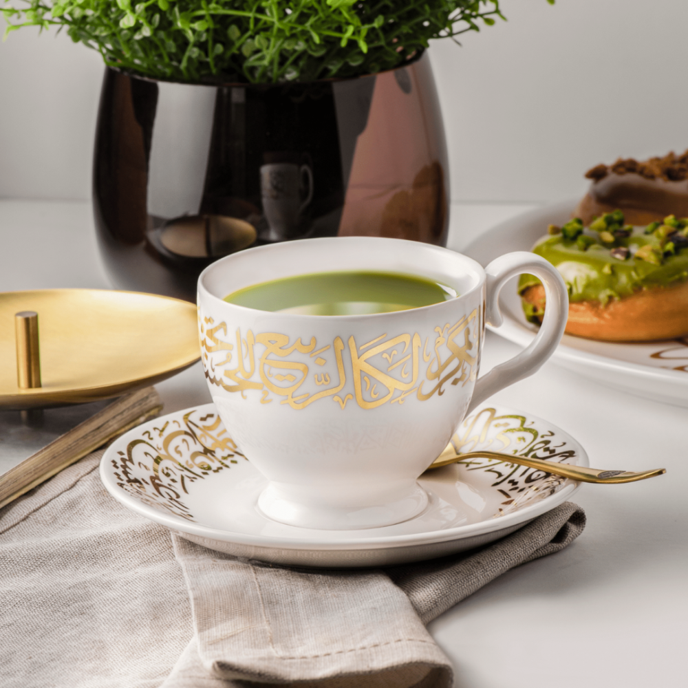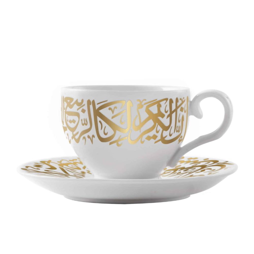 طقم فناجين قهوة بورسلان فاخر بزخرفة ذهبية من الخط العربي