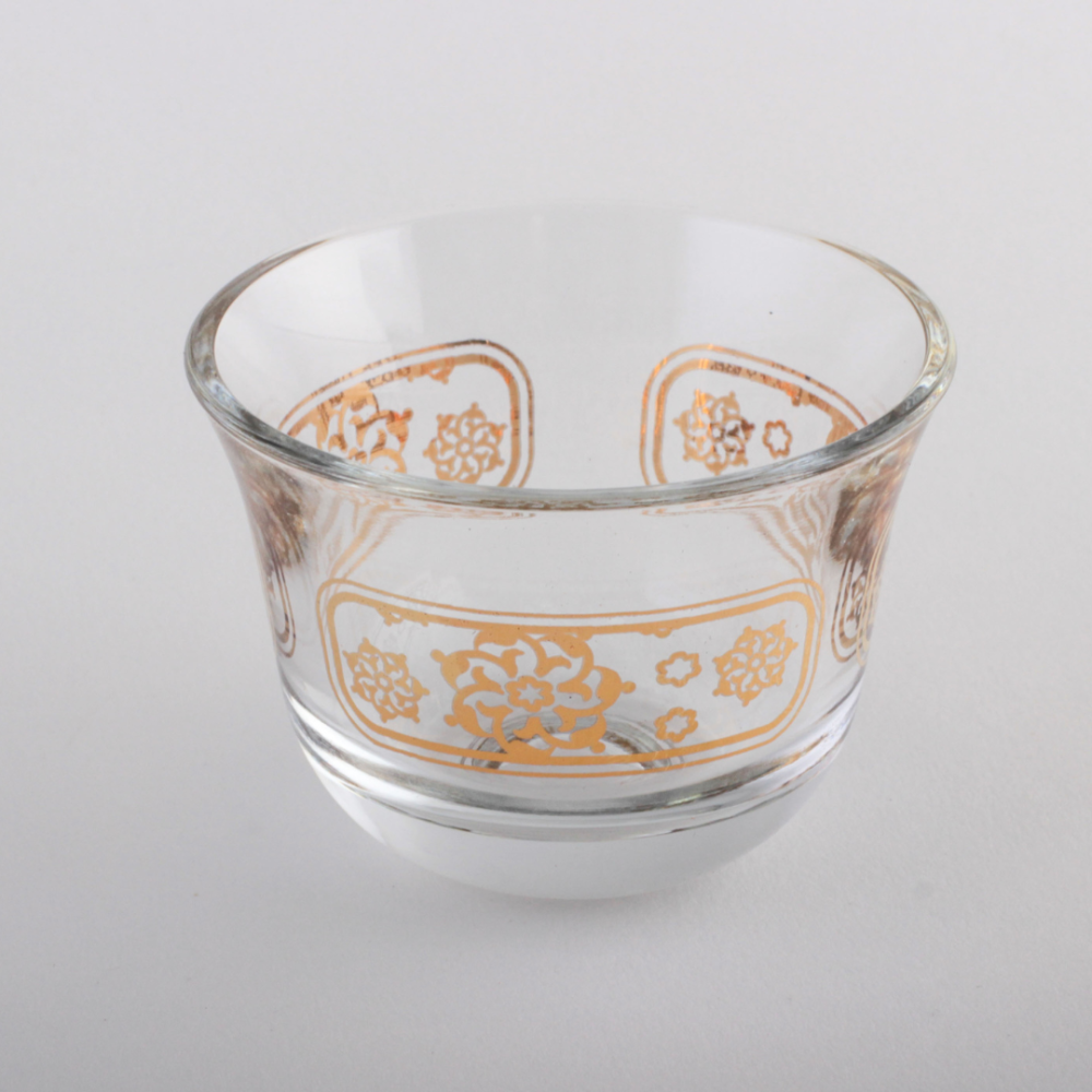 طقم فناجين قهوة عربية زجاجية بزخرفة ذهبية انيقة مستوحاة من الورد
